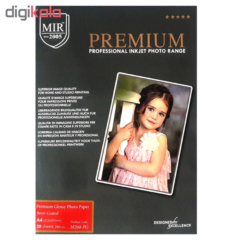 کاغذ چاپ عکس فتو گلاسه میر مدل RC براق : رویه این کاغذ از نوع براق و سیقلی می باشد که به آن زیبایی خاص و جذابی داده است. کاغذ میر فتوگلاسه براق از نوع RC با کیفیت بالا و جذب جوهر عالی و ماندگاری بلند مدت می باشد. این نوع کاغذ به دلیل کیفیت بالا در عکاسی ها بسیار پر کاربرد می باشد.