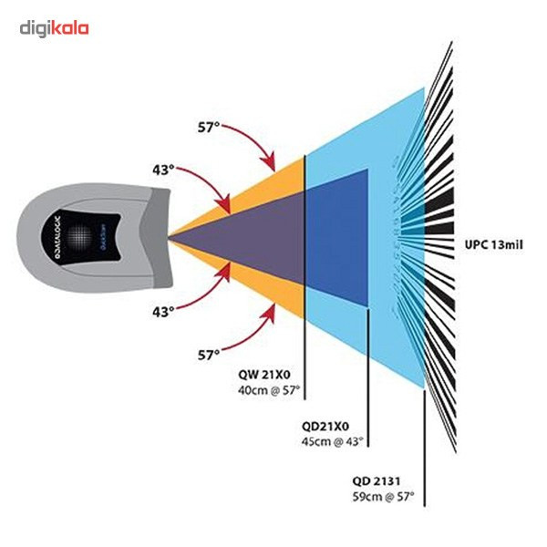 امروزه بارکدهای دوبعدی در حال رشد هستند و صنایع مختلف از آنها استفاده میکنند؛ باوجوداین بارکدهای خطی همچنان در صنعت جمعآوری اتوماتیک اطلاعات و دادهها بر مسند قدرت نشستهاند. بارکدهای عریض خطی بهطور گسترده در مصارف زیادی مانند قبوض و رسیدها، پردازش اسناد و بستهبندی استفاده میشوند؛ اما این بارکدها برای بارکدخوانهای «محدوده» به دلیل زاویهی دید (Field of View) محدود و عمق زمینهی (Depth of Field) کم، چالشی بزرگ هستند. بارکدخوان «QuickScan QD2131» از سری «QuickScan 2100» محدودهی اسکن بسیار عریض و اسکن عمیقی دارد که به کاربر اجازه میدهد بهسادگی بارکدهای عریض را از فاصلهای کوتاه اسکن کند؛ همچنین QuickScan QD2131 از برد اسکن مازادی بهره میبرد که حتی از ملزومات اکثر مصارف بیشتر است! خط اسکن مرئی QuickScan QD2131 آن را به اسکنری کاملا آسان و کاربردی تبدیل کرده است. الگوریتم اسکن بارکد پیشرفته به QuickScan QD2131 اجازه میدهد تا بارکدها را با سرعت بیشتری اسکن کند. جزئیات زیبای طراحی در قالبی کوچکتر و سبکتر قرار داده شده است؛ بدون اینکه دوام و پایایی دستگاه را تحتتأثیر قرار دهد. این بارکدخوان برای مصارف «POS» بسیار مناسب است؛ همچنین میتوان از آن برای اسکن کارتهای تخفیف یا کارتهای عضویت استفاده کرد. اسکن کد از طریق صفحهنمایش تلفنهای همراه هم در این مدل گنجانده شده است. این مهم در اسکنرهای لیزری ممکن نیست.