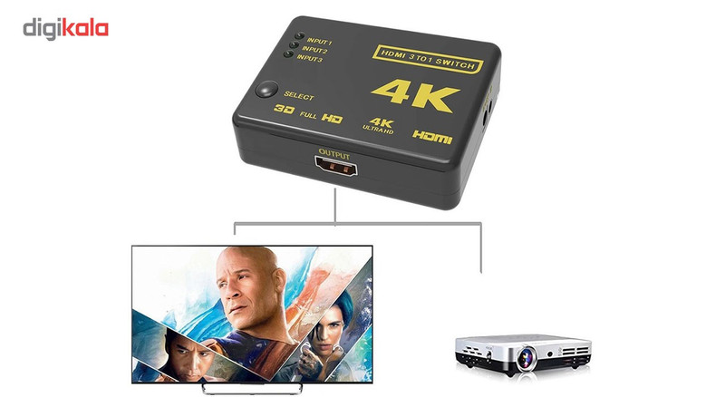 سوییچ 3 پورت 4k UltraHD HDMI مدل UH-301 برای اشتراک گذاری چند سیستم پخش کننده ی تصویر به یک نمایشگر استفاده میشود. این محصول یکی از کاربردیترین اقلامی است که امروزه با پیشرفت تکنولوژی استفاده از آن نیز به نوعی الزام تبدیل گشته است. سوئیچ اچ دی ام آی 3 پورت زمانی مورد استفاده قرار میگیرد که بخواهید از چند دستگاه شبیه هم در موقع لزوم استفاده کنید، درواقع ما قصد داریم یکی از محصولات کاربردی و مورد استفاده در اکثر سازمانها و حتی شبکههای کوچک و یا حتی خانگی را به شما معرفی کنیم.این وسیله اتصال کننده دستگاهای پخش کننده به نمایشگر بصورت جداگانه است. بوسیله دکمه ی تعبیه شده روی دستگاه میتوان به صورت جداگانه پورت دستگاه را سوئیچ کرد.مدل UH-301 با پشتیبانی از بالاترین و بهترین کیفیت تصویری 4K Ulrta HD توانایی اتصال سه دستگاه گوناگون مانند پلی استیشن، رسیور، سینمای خانگی، گیرنده دیجیتال، دوربین، ایکس باکس ( باخروجی HDMI ) را به صورت همزمان به یک تلویزیون LCD یا LED دارای ورودی HDMI را دارد.