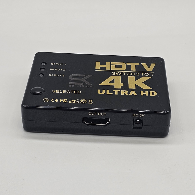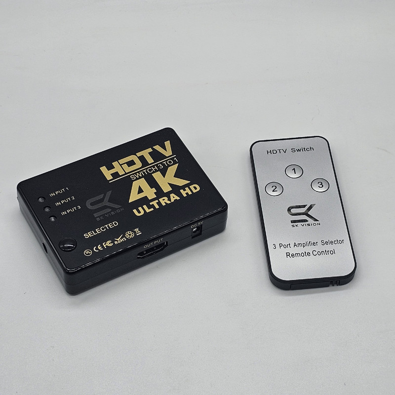 سوییچ 3 پورت از برند اسکای ویژن 4k UltraHD HDMI مدل IFSWR-302 برای اشتراک گذاری چند سیستم پخش کننده ی تصویر به یک نمایشگر استفاده میشود. به صورتی که شما ۳ دستگاه مختلف HDMI را به 1 مانیتور متصل میکند و با استفاده از دکمه روی محصول و یا کنترل از طریق کنترل از فاصله دور این و بدون نیاز به برق و اداپتور محصول یکی از کاربردیترین اقلامی است که امروزه با پیشرفت تکنولوژی استفاده از آن نیز به نوعی الزام تبدیل گشته است. سوئیچ اچ دی ام آی 3 پورت زمانی مورد استفاده قرار میگیرد که بخواهید از چند دستگاه شبیه هم در موقع لزوم استفاده کنید وسیله اتصال کننده دستگاهای پخش کننده به نمایشگر بصورت جداگانه است. بوسیله دکمه ی تعبیه شده روی دستگاه میتوان به صورت جداگانه پورت دستگاه را سوئیچ کرد.مد با پشتیبانی از بالاترین و بهترین کیفیت تصویری 4K Ulrta HD توانایی اتصال سه دستگاه گوناگون مانند پلی استیشن، رسیور، سینمای خانگی، گیرنده دیجیتال، دوربین، ایکس باکس ( باخروجی HDMI ) را به صورت همزمان به یک تلویزیون LCD یا LED دارای ورودی HDMI را دارد