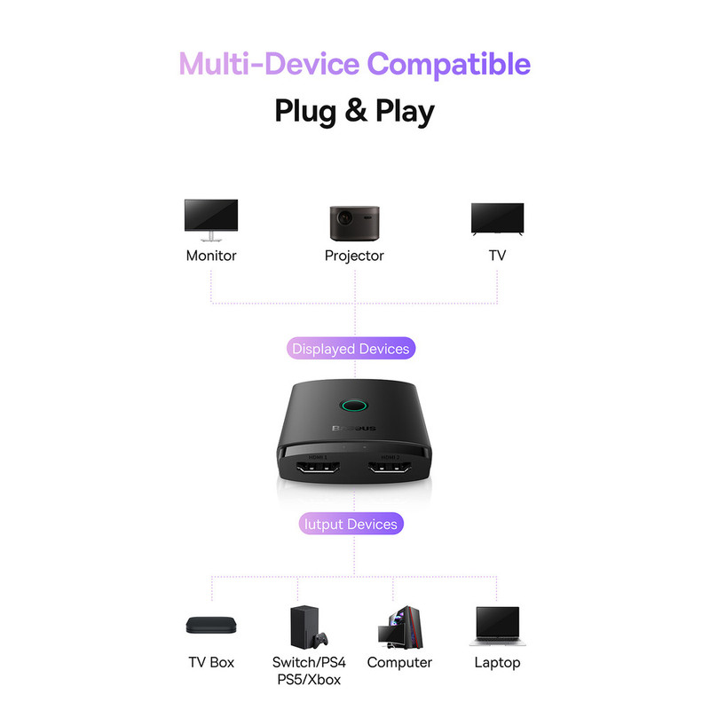 تکنیک تل، تجربهای نوین از اتصال حرفهای را برای کاربران مدرن و گیمرها فراهم میکند. این مجموعه، با تمرکز بر کیفیت و عملکرد، همواره بهترین محصولات دیجیتال را ارائه داده است. در همین راستا، سوئیچ 1 به 2 HDMI مدل BS-OH113 از برند Baseus را معرفی میکنیم؛ محصولی که برای رفع مشکلات اتصال چند HDMI به نمایشگر یا جابهجایی تصاویر بین نمایشگرها طراحی شده است. آیا بارها با مشکل اتصال همزمان چند دستگاه HDMI به یک نمایشگر مواجه شدهاید؟ یا شاید بخواهید از یک دستگاه HDMI (مثل کنسول بازی یا لپتاپ) بهطور آسان روی دو نمایشگر مختلف خروجی بگیرید، مثلاً یکبار روی تلویزیون اتاق نشیمن و بار دیگر روی مانیتور اتاق کار؟ سوئیچ Baseus مدل BS-OH113 دقیقاً برای چنین نیازهایی طراحی شده است. این دستگاه امکان اتصال دو منبع HDMI به یک نمایشگر یا یک منبع HDMI به دو نمایشگر را فراهم میکند، بهطوریکه تنها با یک کلید ساده، میتوانید بین دستگاهها یا نمایشگرها جابهجا شوید، بدون نیاز به قطع و وصل مکرر کابلها. این سوئیچ، با پشتیبانی از رزولوشن 4K با نرخ تازهسازی 60 هرتز، تصاویر واضح و روانی را ارائه میدهد. این ویژگی، بهویژه برای گیمرها و افرادی که به کیفیت تصویر بالا اهمیت میدهند، ایدهآل است. بدنه ساختهشده از مواد مقاوم در برابر حرارت (PC Fireproof) این دستگاه نهتنها دوام بالایی دارد، بلکه با طراحی مینیمال خود، جلوهای مدرن به محیط کاری شما میبخشد. همچنین ابعاد جمعوجور آن، استفاده و حمل را بسیار آسان کرده است. این محصول، با تمامی دستگاههای دارای پورت HDMI، از جمله کنسولهای PS5، PS4، تلویزیونها و پخشکنندههای دیجیتال سازگار است. این ویژگی، کاربری آن را برای تمامی محیطها و کاربران تضمین میکند. با خرید سوئیچ BS-OH113 از تکنیک تل، شما از اصالت و کیفیت محصول اطمینان خواهید داشت. تکنیک تل تنها محصولاتی را ارائه میدهد که با استانداردهای بینالمللی سازگار هستند و نیازهای کاربران حرفهای را برآورده میکنند. انتخاب تکنیک تل، یعنی تضمین یک خرید مطمئن و دریافت محصولی که دقیقاً همان عملکردی را ارائه میدهد که وعده داده شده است. با سوئیچ BS-OH113، تجربهای جدید از مدیریت حرفهای دستگاههای HDMI خود داشته باشید.