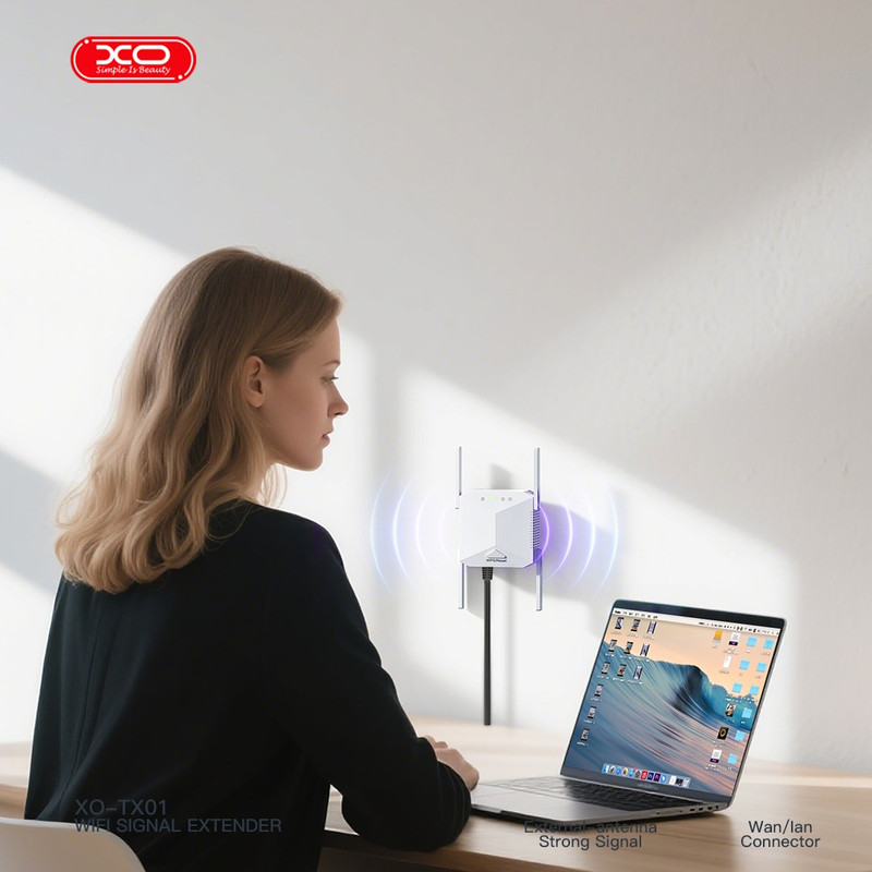 تقویتکننده وایفای XO مدل TX01 یک دستگاه حرفهای برای افزایش پوشش و قدرت سیگنال شبکههای بیسیم است. این محصول با پشتیبانی از دو باند ۲.۴ و ۵ گیگاهرتز، سرعت انتقال بالا و چیپست قدرتمند، گزینهای مناسب برای منازل، دفاتر کاری و فروشگاهها محسوب میشود. طراحی جمعوجور، نصب آسان و امنیت بالا از دیگر ویژگیهای برجسته این مدل است.