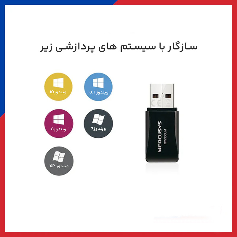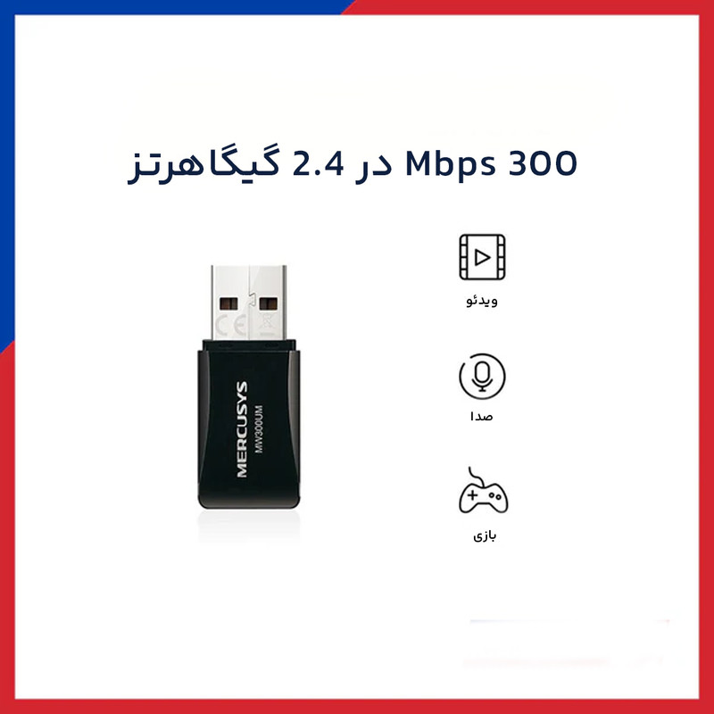 MW300UM یک کارت شبکه بیسیم است که توسط کمپانی مرکوسیس (Mercusys) طراحی و تولید شده است. این کارت شبکه قادر است از طریق پورت USB به کامپیوتر شما متصل گردد و به شما این امکان را بدهد تا بتوانید کامپیوتر باسیم خود را بهصورت بیسیم به اینترنت و یا هر شبکهی دیگری متصل نمایید. به عنوان مثال شما یک مودم-روتر در منزل و یا محل کار دارید که لپتاپ، تبلت، گوشی موبایل و... را بهصورت بیسیم به آن متصل کردهاید ولی کامپیوتر شما بهصورت باسیم و از طریق کابل به آن متصل است و شما میخواهید کامپیوتر را هم بهصورت بیسیم به مودم-روتر خود متصل نمایید. برای این کار فقط کافی است که شما این محصول را به پورت USB کامپیوتر مورد نظر متصل نمایید تا بتوانید از اتصال بیسیم، با کامپیوتر خود لذت ببرید. مثال دیگر برای کاربری این محصول این است که شما در منزل محل کار و... کامپیوتری دارید که بهصورت باسیم به یک شبکه متصل است و شما میتوانید با استفاده از این محصول آن کامپیوتر را بهصورت بیسیم به شبکه متصل نمایید.. درکل شما میتوانید با کارت شبکه مرکوسیس مدل MW300UM یک کامپیوتر را به صورت بیسیم به یک شبکه و یا کارت شبکه متصل نمایید