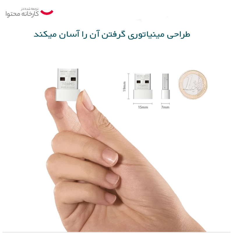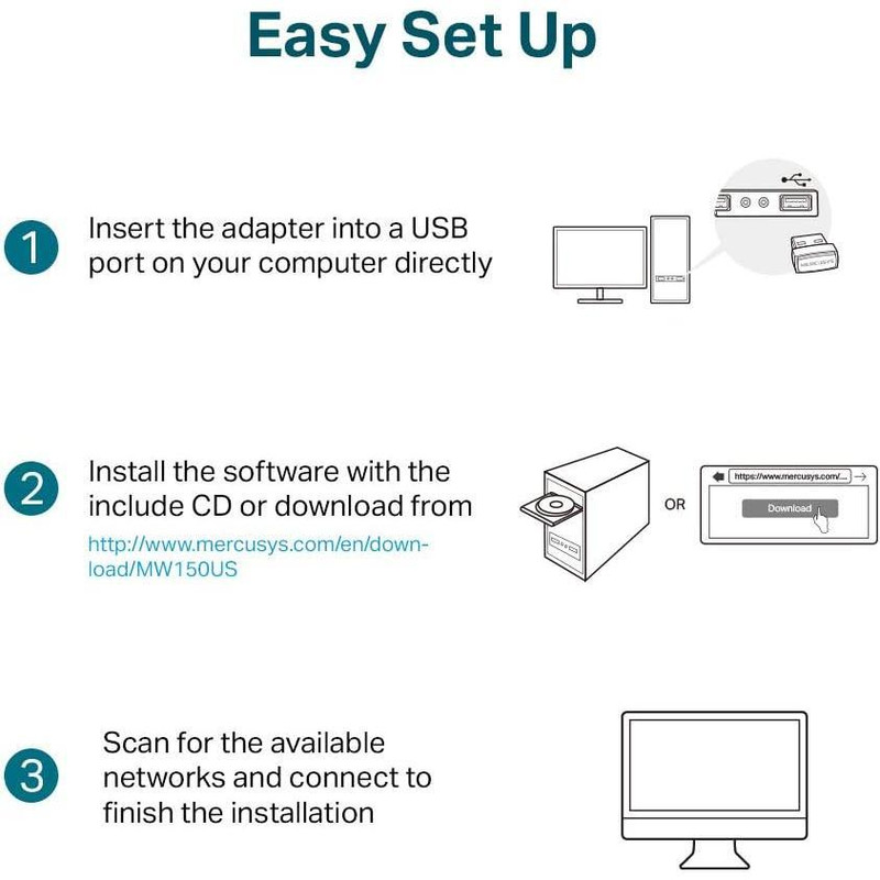 MW150US یک کارت شبکه بیسیم است که توسط کمپانی مرکوسیس (Mercusys) طراحی و تولید شده است. این کارت شبکه قادر است از طریق پورت USB به کامپیوتر شما متصل گردد و به شما این امکان را بدهد تا بتوانید کامپیوتر باسیم خود را بهصورت بیسیم به اینترنت و یا هر شبکهی دیگری متصل نمایید. به عنوان مثال شما یک مودم-روتر در منزل و یا محل کار دارید که لپتاپ، تبلت، گوشی موبایل و... را بهصورت بیسیم به آن متصل کردهاید ولی کامپیوتر شما بهصورت باسیم و از طریق کابل به آن متصل است و شما میخواهید کامپیوتر را هم بهصورت بیسیم به مودم-روتر خود متصل نمایید. برای این کار فقط کافی است که شما این محصول را به پورت USB کامپیوتر مورد نظر متصل نمایید تا بتوانید از اتصال بیسیم، با کامپیوتر خود لذت ببرید. مثال دیگر برای کاربری این محصول این است که شما در منزل محل کار و... کامپیوتری دارید که بهصورت باسیم به یک شبکه متصل است و شما میتوانید با استفاده از این محصول آن کامپیوتر را بهصورت بیسیم به شبکه متصل نمایید.