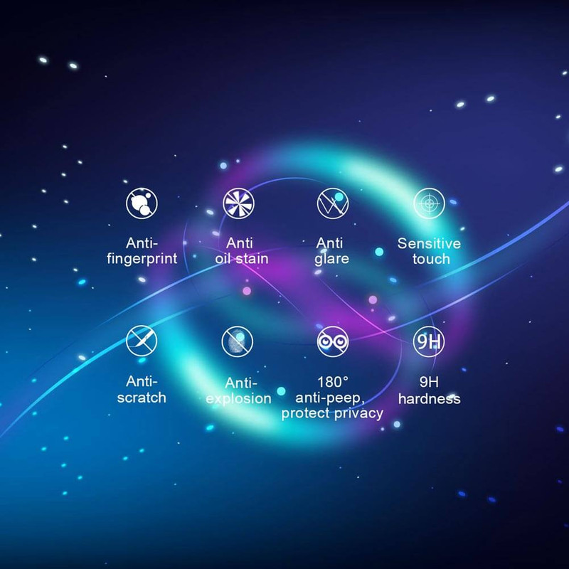 ویژگی‌ها : 9H , جلوگیری از انعکاس نور , جلوگیری از ایجاد خط و خش , قابلیت نصب آسان , مقاوم در برابر چربی و اثرانگشت , مقاوم در برابر خط و خش , نصب بدون حباب