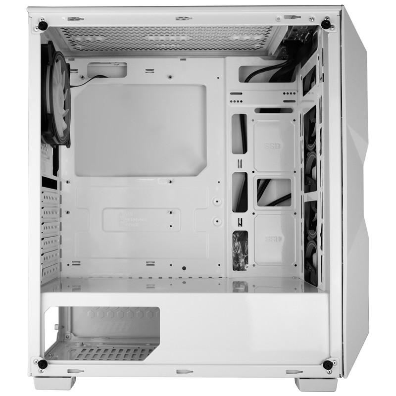 درگاههای ارتباطی کیس شامل دو پورت USB 2.0، یک پورت USB 3.0 Type-A و یک جک ۳.۵ میلیمتری صدا است. این محصول برای کاربری گیمینگ طراحی شده و قابلیتهایی مانند سیستم مدیریت کابل، فیلتر گرد و غبار، نصب بدون پیچ درایوهای ۲.۵ و ۳.۵ اینچی و حتی نصب بدون پیچ کارت توسعه را ارائه میدهد. همچنین پنل جلو، پنل سمت راست و پنل شیشهای بدون نیاز به ابزار باز میشوند و طراحی داخلی آن با لبههای صاف و ایمن همراه است. وجود لرزشگیر در پایهها، کابلهای باکیفیت، هاب فن و مقاومت بالای پنل کناری از دیگر ویژگیهای کاربردی این کیس محسوب میشود.
