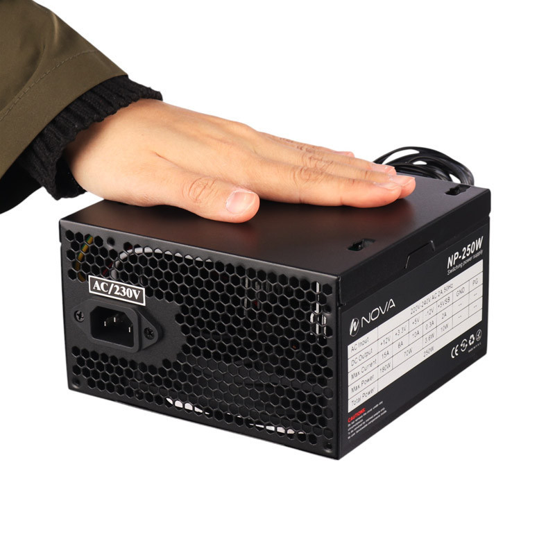 نبع تغذیه نوا مدل NP- 250 از نوع غیر ماژولار بر اساس فرم فاکتور ATX طراحی شده است، پاور نوا برای انواع سیستم ها با مادربردهای اندازه استاندارد مناسب می باشد. این منبع تغذیه با بهره بردن از متریال و قطعات با کیفیت و استانداردهای حفاظتی OCP, OVP, UVP, OPP, SCP,SIP، امنیت قطعات داخلی سیستم را تامین می کند. اتصالات این منبع تغذیه شامل یک عدد کانکتور IDE، دو عدد کانکتور SATA، یک عدد کانکتور 4 پین ATX و یک عدد کانکتور 4+20 پین مادربرد می باشد. یک فن 120 میلی متری نیز بر روی این منبع تغذیه تعبیه شده که فرآیند خنک سازی و متعادل سازی دما را به خوبی اجرا نموده و از آسیب ناشی از فشار بار اضافی و گرمای بیش از حد به قطعات داخلی جلوگیری می کند.