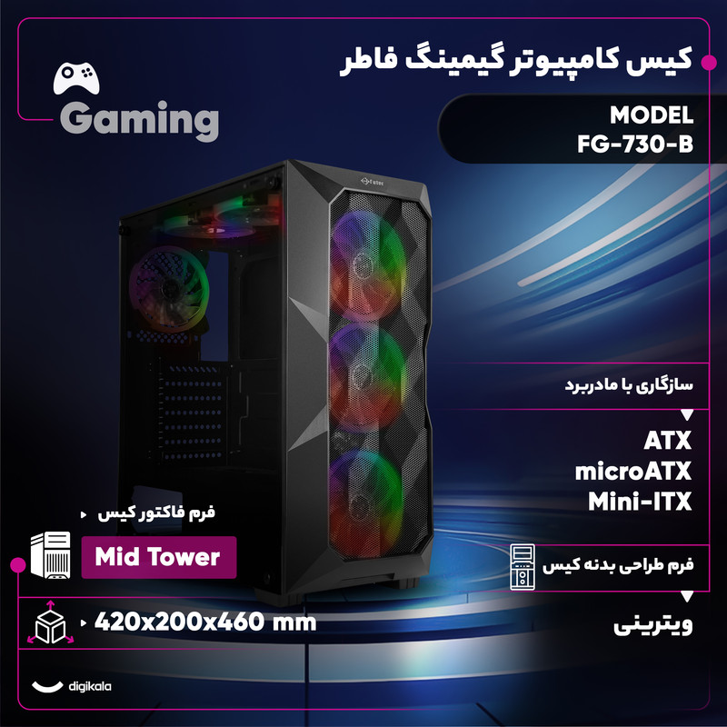 کیسFG-730 فاطر با طراحی هوشمند و ظاهری جذاب،برای کاربران حرفه ای و گیمرها طراحی شده است که بهدنبال کیسی باطراحی خاص هستند.