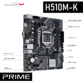 مادربرد PRIME H510M-K ایسوس یکی از انتخابها برای کسانی است که خواهان پردازنده های نسل دهم و یازدهم اینتل برای مصارف روزمره هستند. این مادربرد با دارا بودن درگاههای ارتباطی متعدد، ابعاد کوچک، پشتیبانی از حافظههای DDR4 تا سرعت 3200 مگاهرتز رم، درایو پرسرعت M.2، فن برای مدیریت سیستم خنککننده، یکی از قابلاعتمادترین مادربردهایی است که در همه سناریوهای روزمره قابل استفاده خواهد بود. این مادربرد تمامی نیازها را برآورده خواهد کرد. شرکت ایسوس از چیپست Intel H510 برای این محصول بهره برده است. سوکت پردازنده تعبیه شده برای این مادربرد LGA1200 شرکت اینتل است. این موضوع باعث شده که مادربرد PRIME H510M-K جزء مادربردهای مبتنی بر اینتل باشد. شرکت اینتل برای این محصول خود از دو اسلات رم DDR4 بهره برده است و میتواند تا 64 گیگابایت حافظه رم را پشتیبانی کند. فرم فاکتور این مادربرد از نوع microATX بوده که بهراحتی میتواند توسط بسیاری از کیسها پشتیبانی شود.
