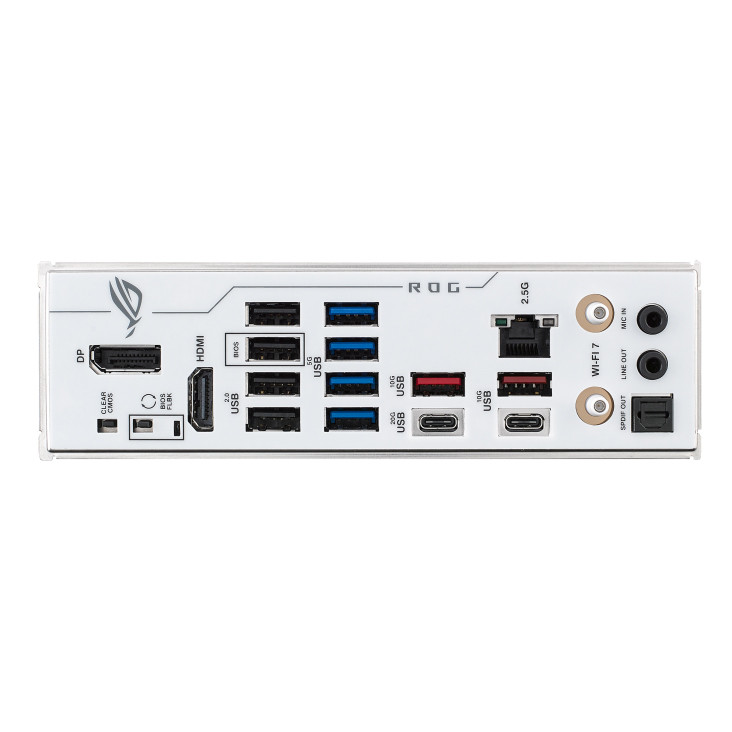 یک پورت DisplayPort / یک پورت HDMI / یک ماژول Wi-Fi 7 و Bluetooth v5.4 / دو جک هدفون Gold-plated / یک پورت خروجی S/PDIF
