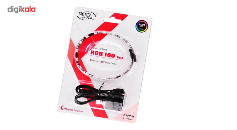 بسیاری از کیسهای حرفهای کامپیوتر دارای نور پردازی LED هستند ولی همچنان کیسهایی وجود دارند که از نورپردازی بهره نمیبرند و تنها به کمک پنجرهی شیشهای که در قسمت کناری آنها تعبیه شده میتوان چرخیدن فن را مشاهده کرد و زیبایی زیادی نخواهد داشت. شرکت دیپ کول محصولی را با نام «RGB 100 R» روانه بازار کرده که درواقع یک کیت نورپردازی برای زیباتر کردن محیط داخل کیس است. این محصول که مانند یک نوار طراحی شده در قسمت پشتی خود از قابلیت آهنربایی بهره میبرد و به راحتی میتوان آن را به هر قسمت فلزی در کیس چسباند. بهراحتی میتوان چند کیت نورپردازی دیپ کول مدل RGB 100 R را به هم متصل کرد. این محصول دارای انعطاف مناسبی است که این موضوع باعث شده بهراحتی بتوان از آن برای قسمتهای مختلف کیس استفاده کرد. RGB 100 R از طریق کانکتور 4 پین انرژی مورد نیاز خود را تامین میکند. رنگ LEDهای این محصول قرمز است که زیبایی خاصی را به کیس دهد.
