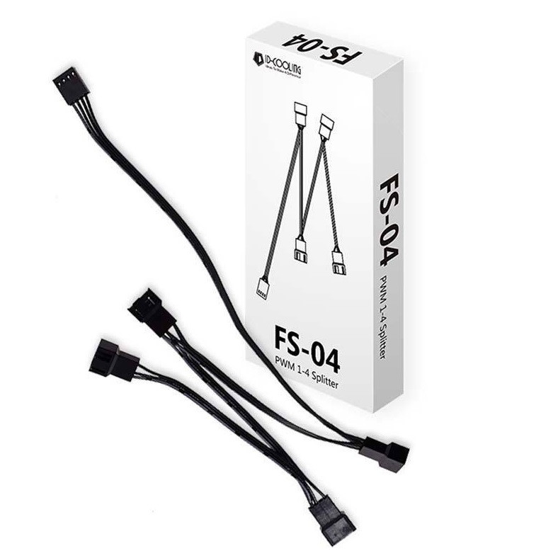 کابل اسپیلیتر افزایش تعداد فن های کیس FS-04 از برند ID-Cooling ، امکان اتصال همزمان 4 عدد فن کیس را به یک کانکتور 4pin مادربرد فراهم می کند . دارای یک ورودی 4pin با قابلیت pwm ( کنترل سرعت چرخش فن ) و چهار خروجی فن با قابلیت pwm است . نصب آن بسیار ساده است و با طول بلند حدود 50 سانتیمتری امکان نصب فن در فاصله های مختلف در کیس را فراهم می کند . هم فن های 4pin و هم فن های 3pin را می توان به این سیم وصل کرد که فن 3pin چون قابلیت pwm ندارد با سرعت ثابت می چرخد . با توجه به این که هر درگاه خروجی 4pin مادربرد نهایت 1 آمپر جریان تامین می کند ، مجموع جریان فن هایی که متصل می شود نباید از 1 آمپر بیشتر شود . مثلا اگر فن های مورد استفاده 0.3 آمپر هستند ، بیش از 3 فن را با یک سیم نباید متصل کرد . جریان مصرفی فن در برچسب پشت فن درج شده است .