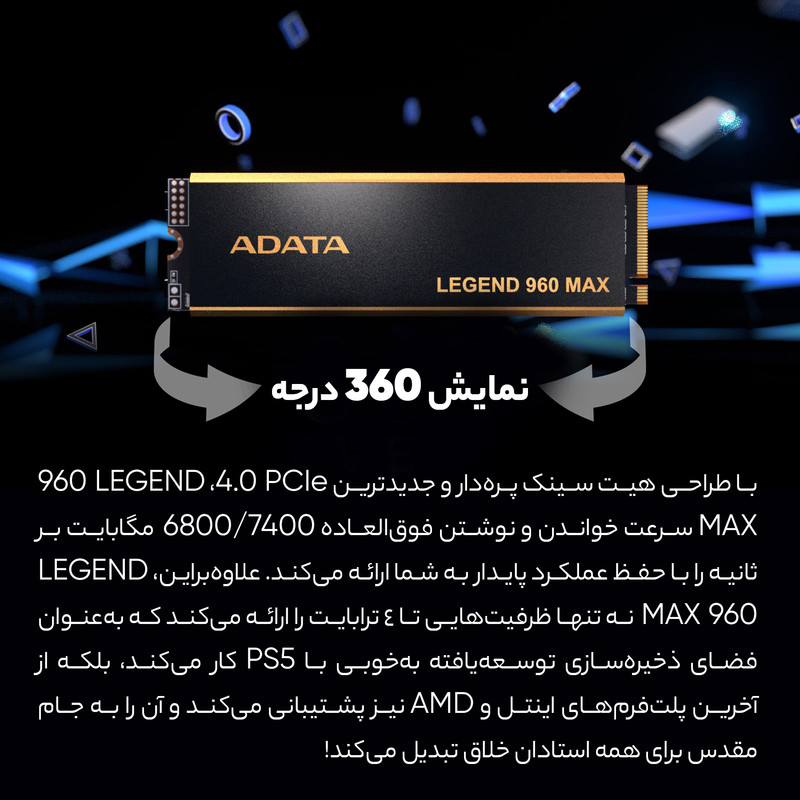 سرعت خواندن ترتیبی: Up to 7,400MB/s (PC/Laptop)x, Up to 6,400MB/s (PS5) MB/s