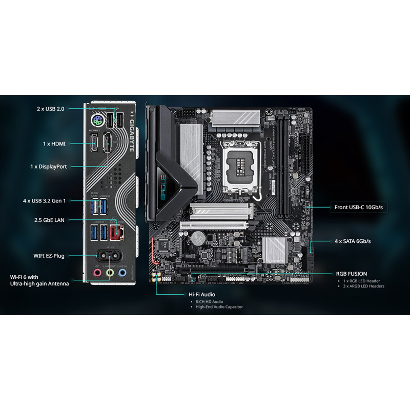 مادربرد گیگابایت مدل B860M EAGLE WIFI6 با طراحی mATX و پشتیبانی از پردازندههای نسل دوم سری Core Ultra، یک گزینه عالی برای کاربران حرفهای و گیمینگ است. این مادربرد از حافظه DDR5 پشتیبانی کرده و امکان اورکلاک پردازنده و رم (با Intel XMP) را فراهم میآورد.