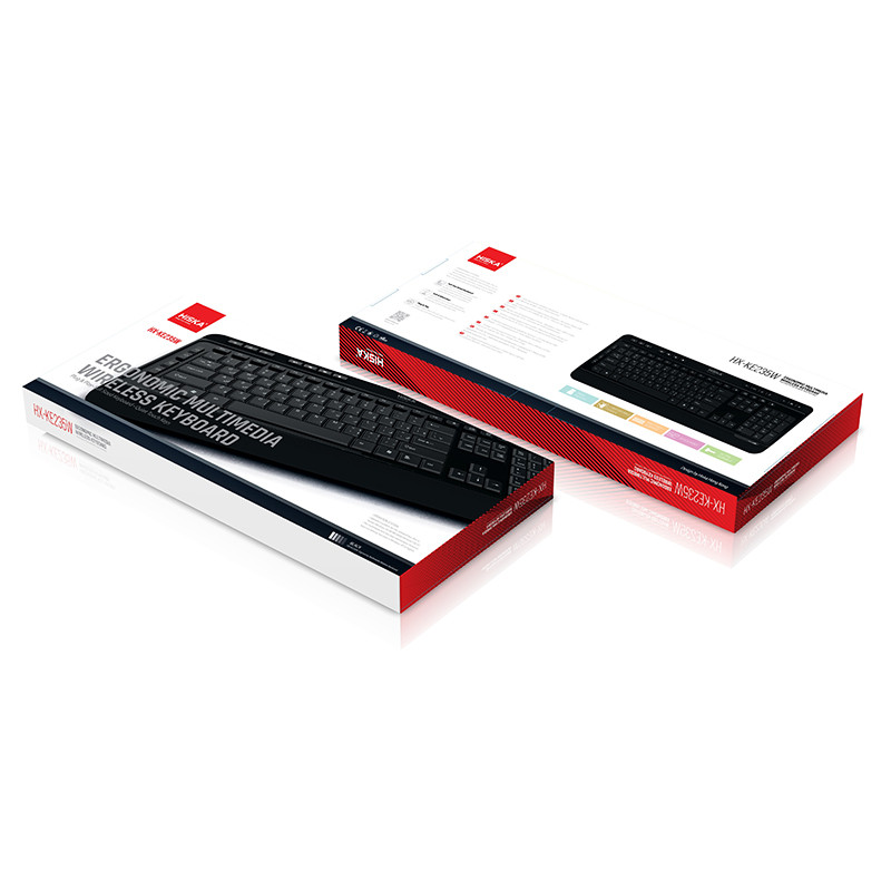 HX-KE235W کیبوردی با ارگونومی مناسب است تا کاربر را از خستگی و دردهای عضلانی مانند مچ درد نجات دهد.کیبورد بی سیم هیسکا مدل HX-KE235W، بدون سیم و اتصال آن از نوع دانگل USB (2.4 گیگاهرتز) میباشد. این کیبورد دارای 124 کلید برای انجام فعالیتهای کامپیوتری است. همچنین کیبورد HX-KE235W دارای 18 کلید میانبر به منظور انجام سریعتر کارهاست که عبارتند از Prev. Page, Next Page, Web Home, email, Search, Refresh, Setting, Play/Pause, Prev. Track, Next Track, Stop, Volume, Mute, Music, Sleep, Awake, Power. کیبورد هیسکا مدل HX-KE235W برای استفادههای روزمره مناسب میباشد و دارای محدوده عملیاتی 10 متر است. از دیگر ویژگیهای این کیبورد محصول کمپانی هیسکا، طراحی کلیدها به گونهای که امکان تایپ کردن در مدت زمانی طولانی را فراهم می کند، دسترسی راحت به تمامی کلید های کاربردی، طراحی نرم و سایلنت کلید ها، با دوام و دارای کلید های مات میباشد.