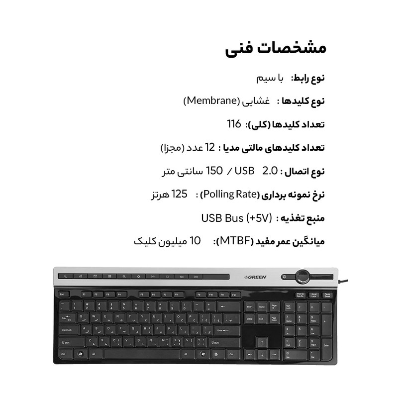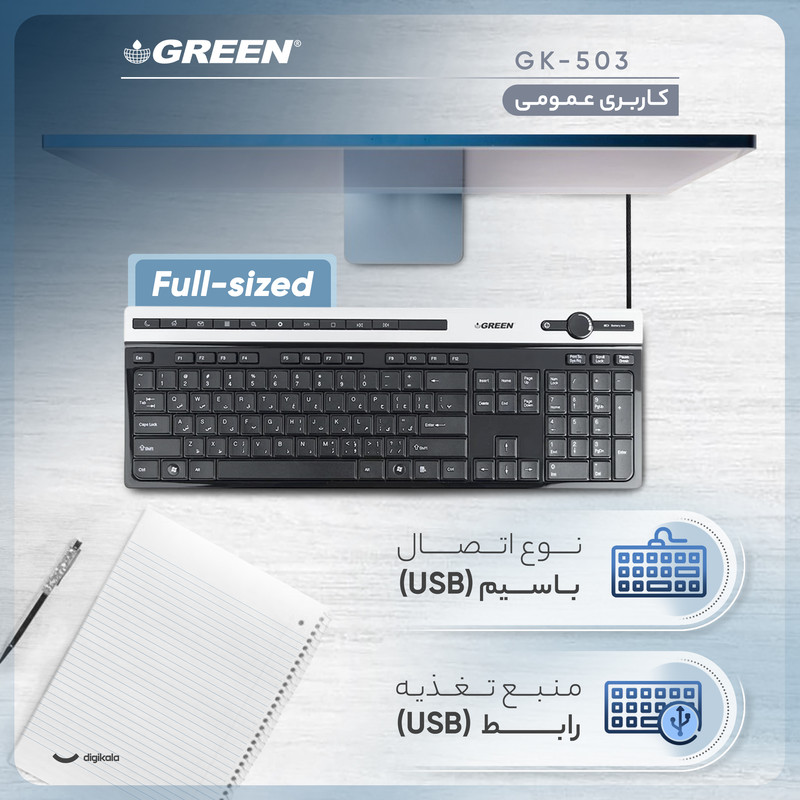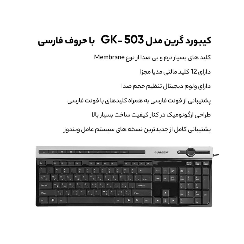 کیبورد گرین مدل GK-503، سوییچ ممبران، Full-Size