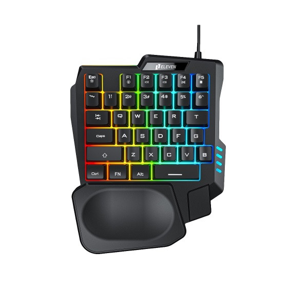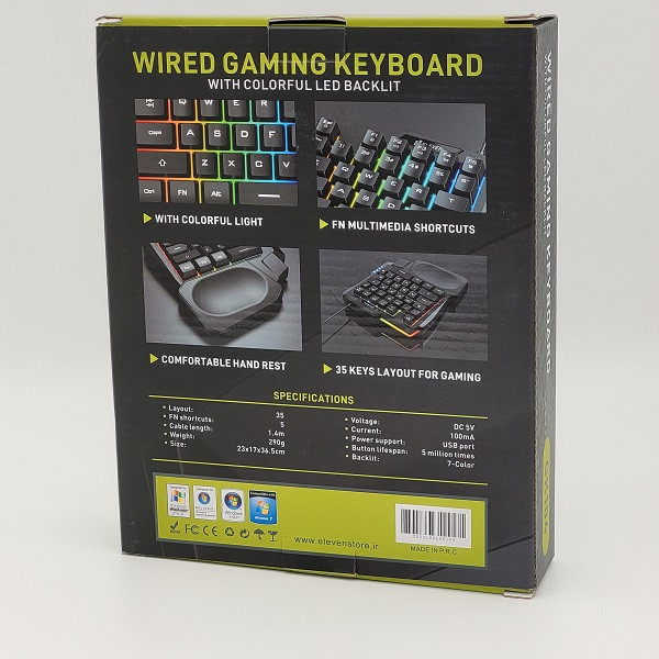 کیبورد گیمینگ ایلون مدل GK104 یک کیبورد کوچک و تخصصی برای گیمرهای حرفهای است که به دنبال عملکرد سریع، طراحی ارگونومیک و نورپردازی جذاب هستند. این کیبورد با ۳۵ کلید اصلی طراحی شده و به دلیل ابعاد کوچک، فقط برای بازی مناسب است و برای تایپ یا استفادهی روزمره پیشنهاد نمیشود. با وجود اندازهی فشرده، استراحتگاه مچ دست (Wrist Rest) در این مدل تعبیه شده که راحتی در استفادهی طولانیمدت را تضمین میکند. همچنین، قابلیت اتصال به موبایل از طریق تبدیل Type-C باعث شده تا این کیبورد انتخابی مناسب برای بازی روی گوشیهای هوشمند باشد. این مدل دارای نورپردازی RGB ثابت است که علاوه بر زیبایی، در محیطهای تاریک نیز وضوح کلیدها را افزایش میدهد. همچنین، کلیدهای ضد لغزش و مقاوم در برابر گرد و غبار و رطوبت، دوام کیبورد را افزایش داده و از آن محصولی بادوام و مقاوم ساخته است. این کیبورد با داشتن ۵ کلید میانبر فانکشنال، امکان اجرای سریع دستورات در بازی را فراهم میکند. طراحی مربعی این کیبورد به کاربران اجازه میدهد زاویهی کیبورد را مطابق با نیاز خود تنظیم کنند و نیازی به قرارگیری مستقیم روبهروی کیبورد نباشد. این ویژگی باعث کاهش خستگی مچ و افزایش تمرکز در بازیهای طولانی میشود. در قسمت زیرین کیبورد نیز از پایههای ضد لغزش لاستیکی استفاده شده تا از حرکت ناخواستهی کیبورد روی سطح جلوگیری کند.