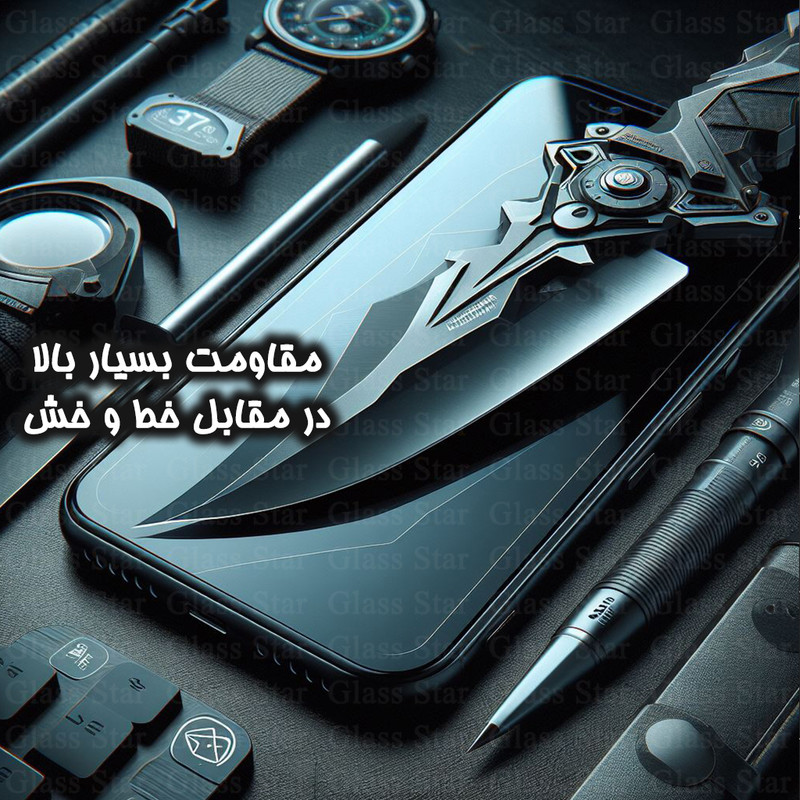 ویژگی‌ها : 9H , جلوگیری از ایجاد خط و خش , قابلیت نصب آسان , مقاوم در برابر چربی و اثرانگشت , مقاوم در برابر خط و خش , نصب بدون حباب