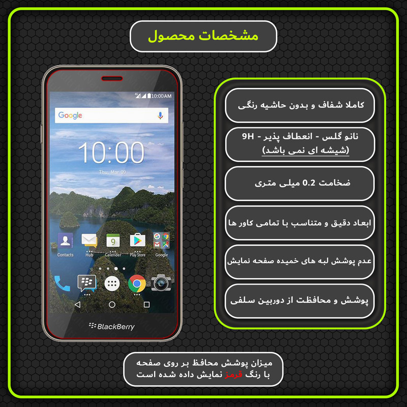 دارای محافظ برای قسمت : جلو (صفحه نمایش)