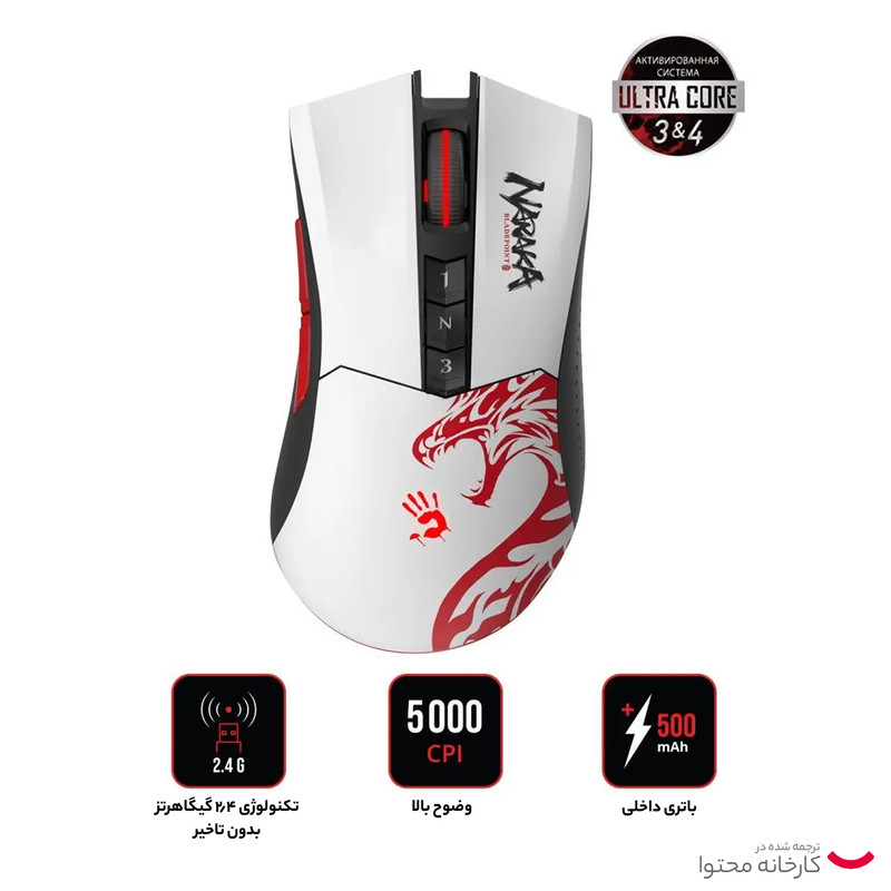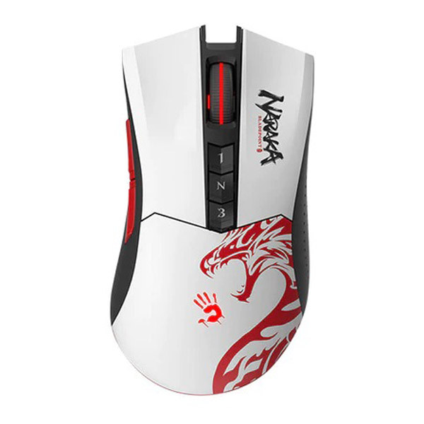 این موس زیبا با الهام گرفتن از بازی NARAKA یکی از برترین بازی های روز دنیا که با همکاری شرکت ای فورتک این موس زیبا شگفت انگیز را ساخته و برای تمامی گیمر ها منتشر کرد. قابلیت بیسیم و با سیم شدن. و با فرکانس بی سیم 2.4 گیگاهرتز مخصوص بازی، از تداخل فرکانس خلاص شوید. حریفان خود را با سرعتی بی نظیر درگیر کنید تا تجربه بازی با تاخیر بسیار پایین را داشته باشید. 8 دکمه قابل برنامه ریزی می توانند بهره وری و کارایی عالی را برای رفع تمام نیازهای بازی شما فراهم کنند. دارای سوئیچ ON/OFF جهت صرفه جویی در انرژی تعبیه شده است که می توان آن را به مدت 60 ساعت به طور مداوم استفاده کرد.