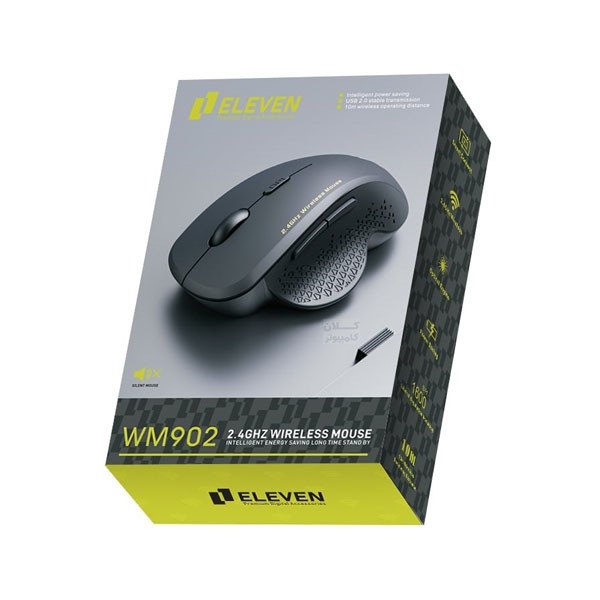 ماوس بی سیم ELEVEN مدل WM902 دارای کیفیتی بالا می باشد. بدنه این موس از متریال پلاستیکی ABS مقاوم در برابر فشار، ضربه و سایر آسیب های فیزیکی ساخته شده و دارای طراحی ارگونومیک به منظور سهولت در استفاده می باشد. قیمت مناسب محصولات ایلون با وجود کیفیت عالی نقطه ی قوت این محصول می باشد.طراحی ماوس وایرلس ELEVEN مدل WM902 زیبا، خوش دست به بیان دیگر دارای طراحی شیک و ارگونومیک است.محدوده ی دقت این ماوس DPI قابل تنظیم از 800 تا 1600 و فرکانس 2.4 گیگاهرتز میباشد.ماوس بی سیم ELEVEN مدل WM902 دارای 6 کلید نرم با میزان ضربه پذیری 2 میلیون کلیک و مجهز به کلید روشن و خاموش در قسمت زیرین محصول می باشد. محدوده عملکرد 10 متر است. منبع تغذیه این محصول یک عدد باتری قلمی می باشد. ماوس بیسیم ایلون مدل WM901 مناسب برای انوع لپ تاپ ها و کامپیوتر های رو میزی است.
