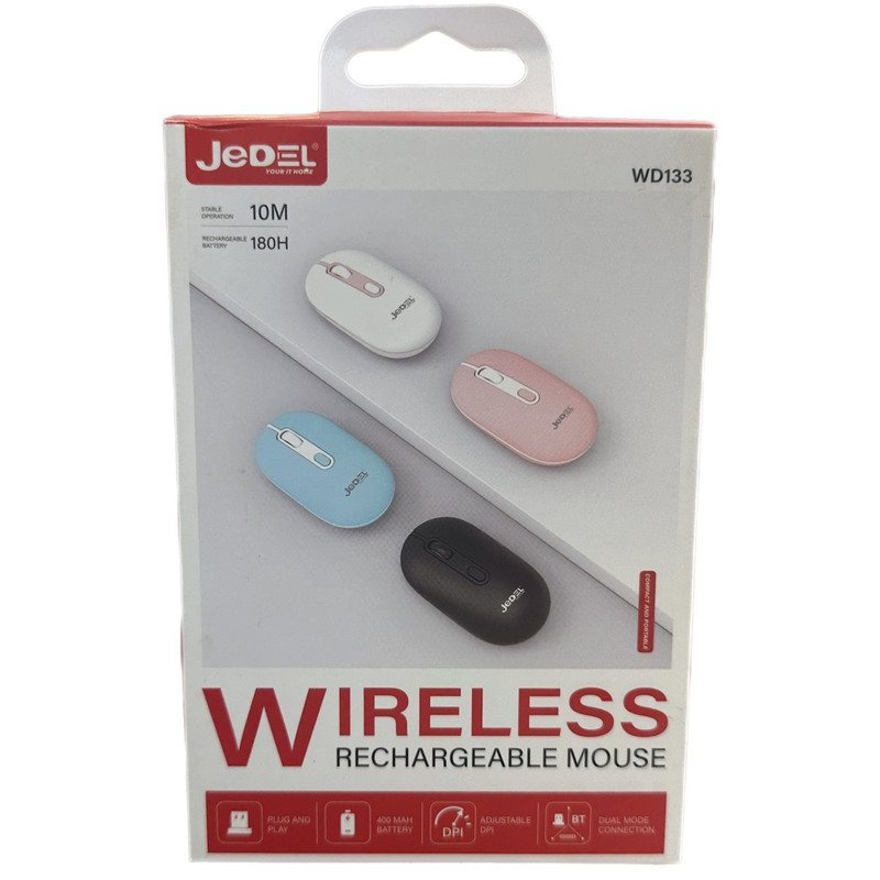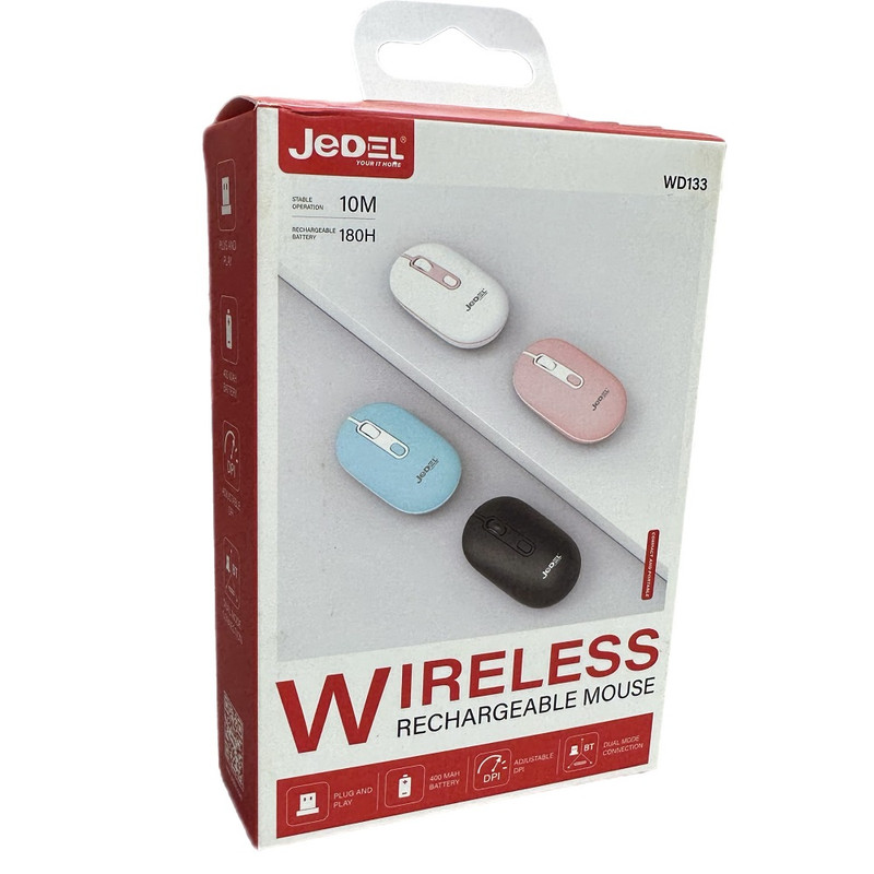 موس WD133 جدل از کیفیت ساخت بالایی برخوردار می باشد این موس قابلیت اتصال با دانگل USB و همچنین بلوتوث را دارد. با نگه داشتن دکمه زیر اسکرول بلوتوث فعال شده و میتوانید به آن متصل شوید. این موس شارژی می باشد و برای استفاده از آن نیازی به خرید باتری ندارید.