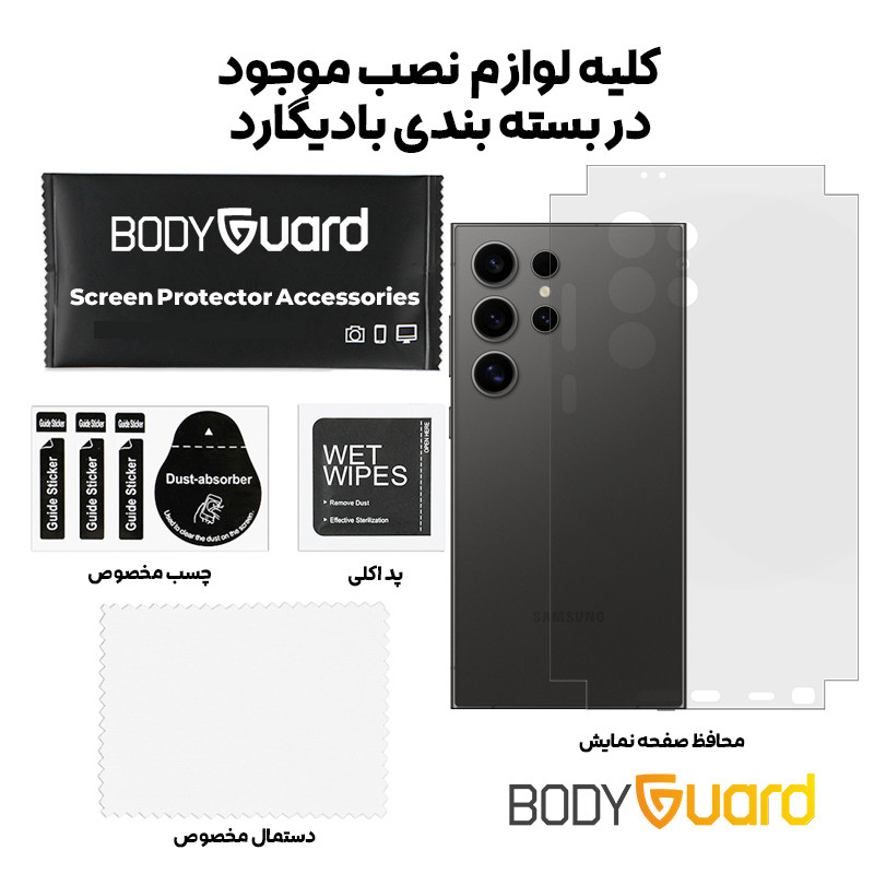 پوشش پشت گوشی - پوشش کناره های گوشی - تمام لوازم مورد نیاز نصب درون بسته بندی - ویدیو آموزش درون بسته بندی