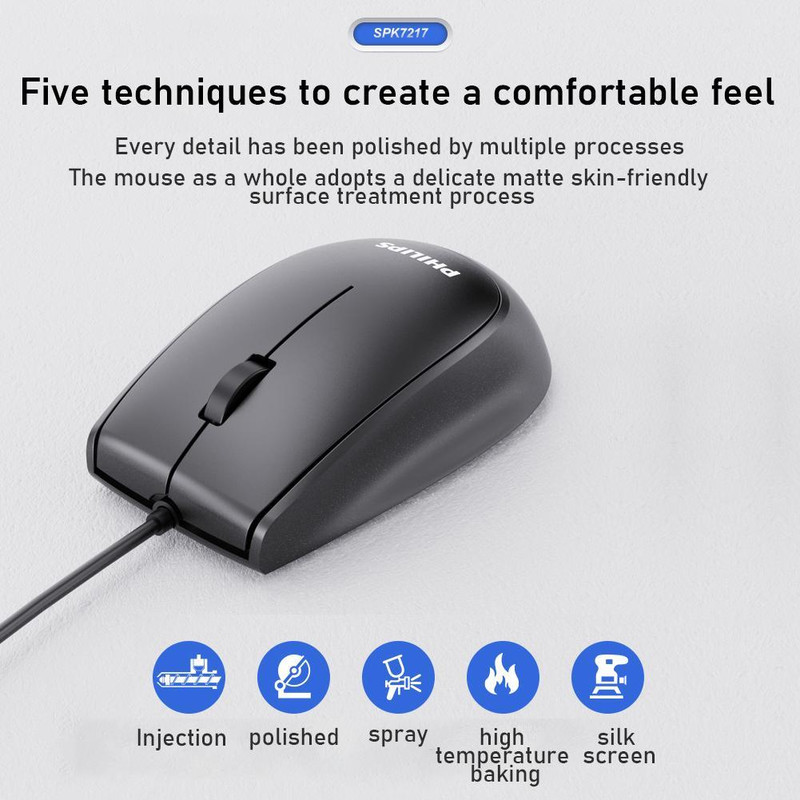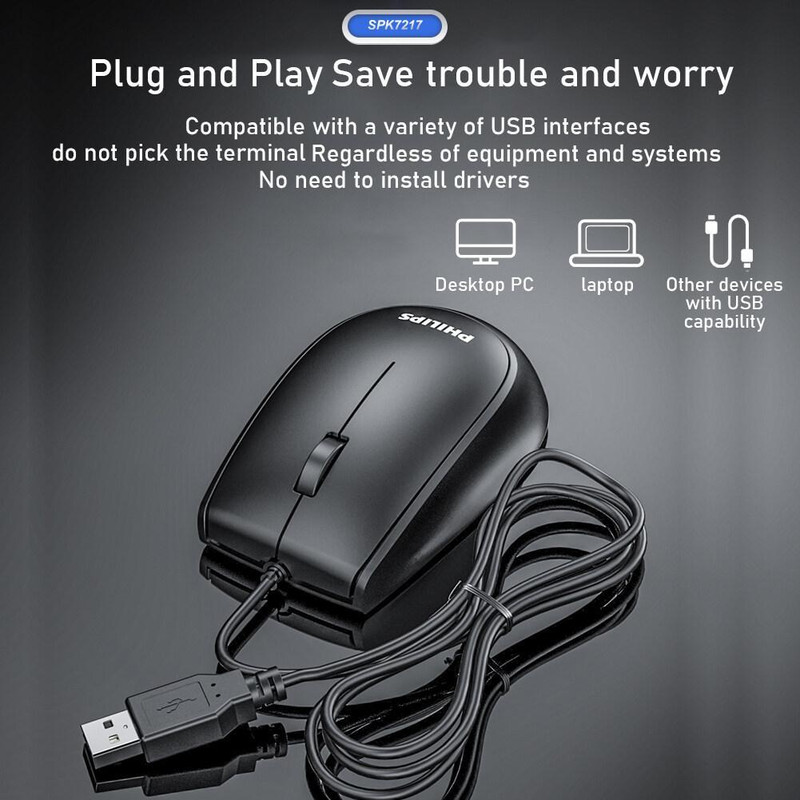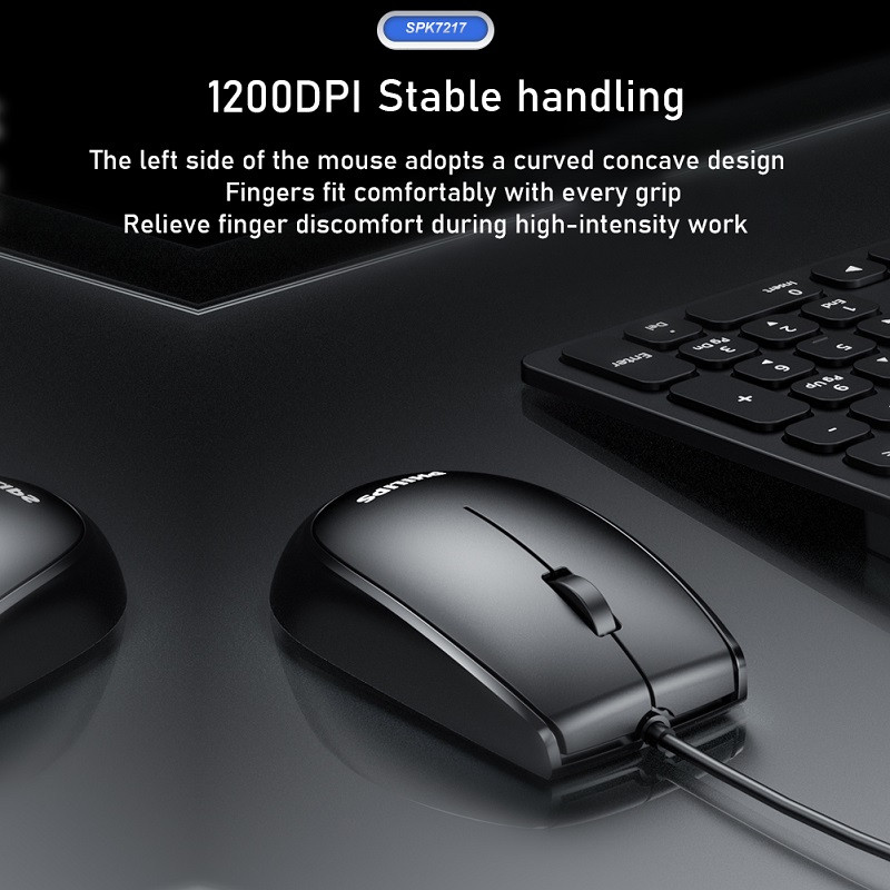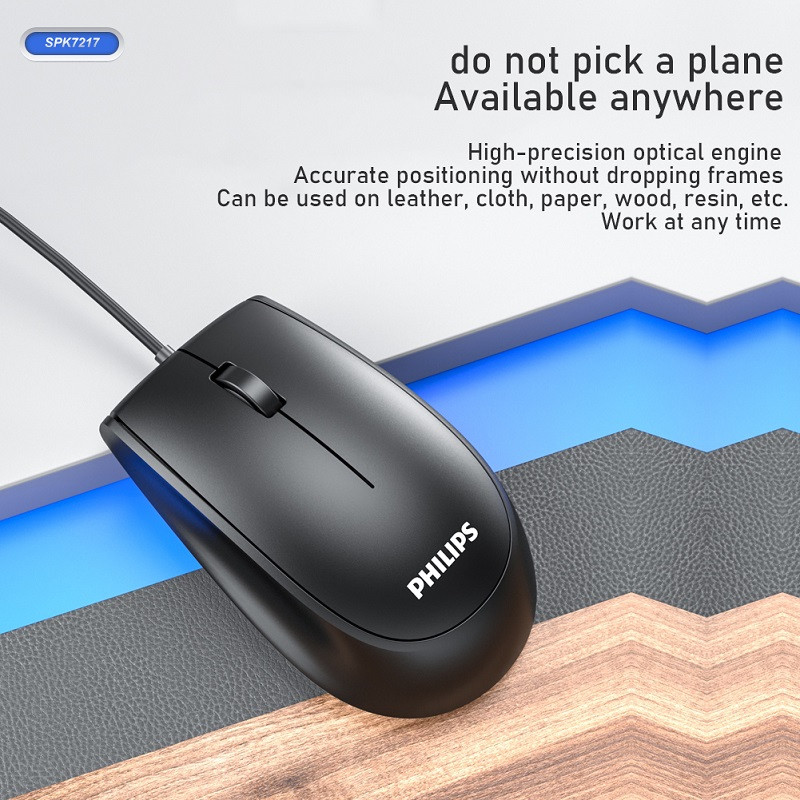 ماوس فیلیپس SPK7217 در عین سادگی در طراحی از کیفیت بسیار بالایی برخوردا است.این ماوس سیم دار برای استفاده طولانی مدت بسیار مطلوب است.به شدت پیشنهاد میشود برای استفاده در محیط های کاری.سایز این ماوس سیم دار اسلیم است و برای دستان زیبای شما مصرف کننده عزیز بسیار مناسب.چنانچه دستان بزرگی دارید پیشنهاد نمیشود