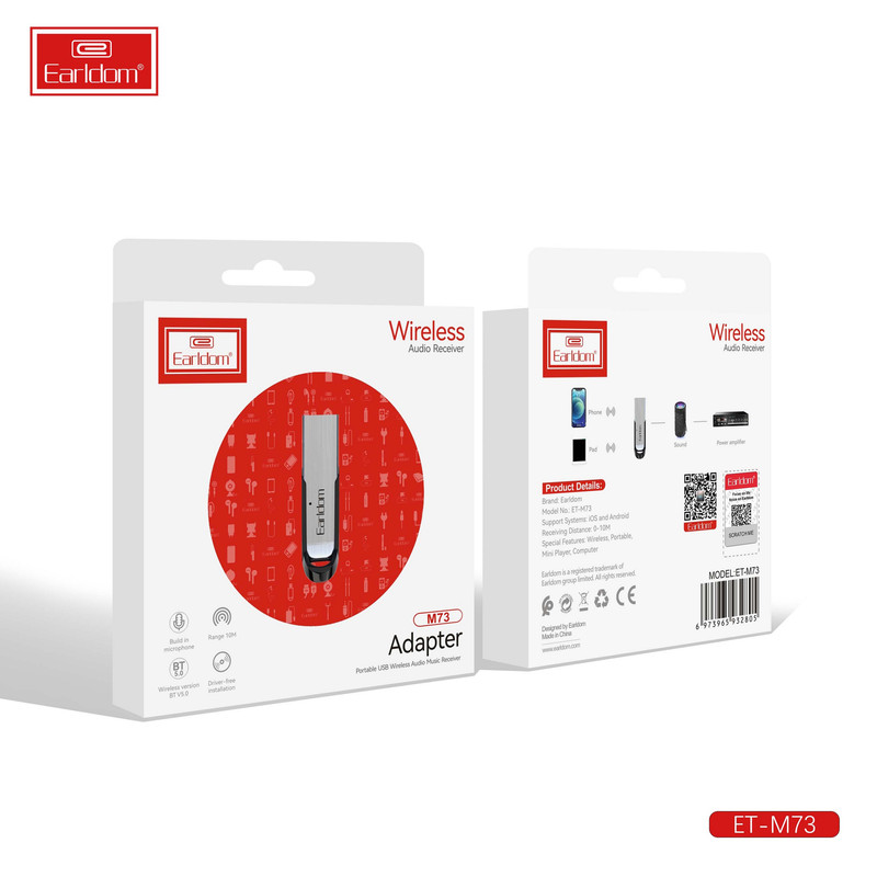 دانگل بلوتوث مدل ET-M73 ارلدام یک کالای بسیار پرطرفدار و کاربردی است. این کالا مانند یک فلش است که بدون نیاز به نصب هیچگونه نرم افزاری می توان آن را راه اندازی کرد و مورد استفاده قرار داد. ضمن اینکه می توان این دانگل را به ضبط ماشین متصل کرد و از این طریق موسیقی مورد نظر را پخش کرد ، همچنین شما قادر هستید که این گیرنده را به اسپیکرهایی که درگاه USB دارند وصل کنید و آن ها را به یک اسپیکر بلوتوثی تبدیل کنید. از دیگر قابلیت های این گیرنده دارا بودن میکروفون برای مکالمه می باشد. این گیرنده همراه با یک درپوش برای جلوگیری از ورود گرد و غبار به داخل گیرنده محافظت میشود.