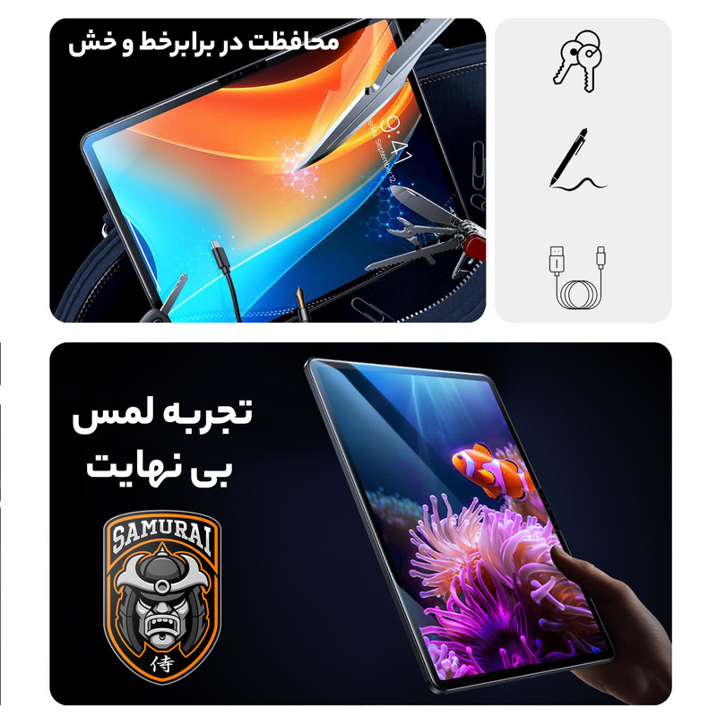 گلس تبلت شیائومی Redmi Pad 2 از برند سامورایی مدل GlastR با فناوری 9H ساخته شده که مقاومت بالایی در برابر ضربه و خط و خش دارد. استفاده از شیشه حرارتدیده در این گلس، محافظتی قوی و بادوام را برای نمایشگر تضمین میکند. پوشش الئوفوبیک از ماندن اثر انگشت و چربی جلوگیری کرده و شفافیت بالای نمایشگر را حفظ میکند. طراحی دقیق با برش دقیق سنسورها، نصب آسان و عدم کاهش حساسیت لمس، تجربهای روان و بینقص ارائه میدهد. همچنین این گلس با کیسها و کیفهای مختلف سازگاری کامل دارد و انتخابی ایدهآل برای محافظت از Xiaomi Redmi Pad2محسوب میشود.