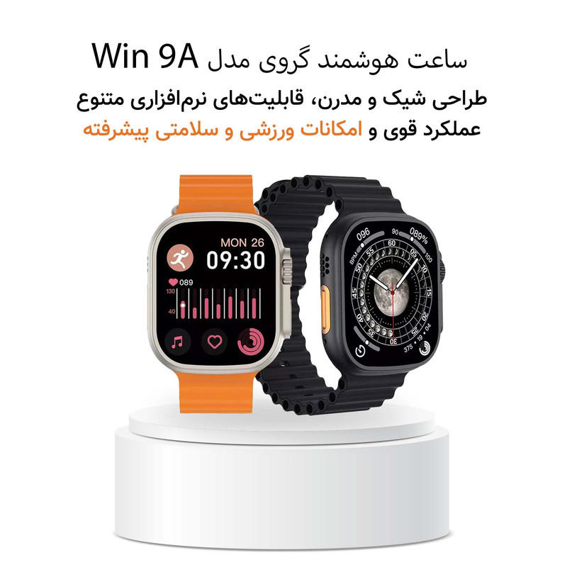 ساعت هوشمند Win 9A+ یکی از شکیلترین و باکیفیتترین ساعتهای اقتصادی بازار است که با الهام از طراحی محبوب Ultra ساخته شده و ظاهر بسیار لوکس و جذابی دارد. نمایشگر بزرگ و HD این ساعت با رنگهای شفاف و روشنایی قابل توجه، تجربهای نزدیک به ساعتهای ردهبالا ارائه میدهد. بندهای سیلیکونی نرم و مستحکم، علاوه بر راحتی، در برابر تعریق، کشش و استفاده مداوم مقاومت بالایی دارند و برای فعالیتهای ورزشی و روزمره کاملاً مناسباند.