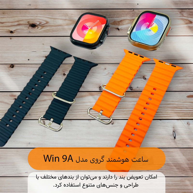 ساعت هوشمند 49 میلی متر گروی مدل Win 9A با بند سیلیکونی