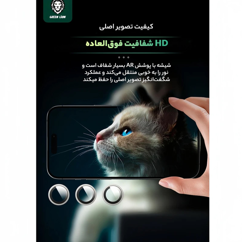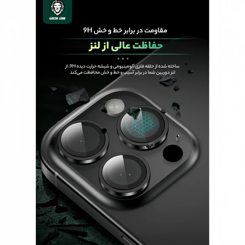 محافظ لنز دوربین گرین لاین مدل HD Plus مناسب برای گوشی موبایل اپل iPhone 16 Pro / 16 ProMax
