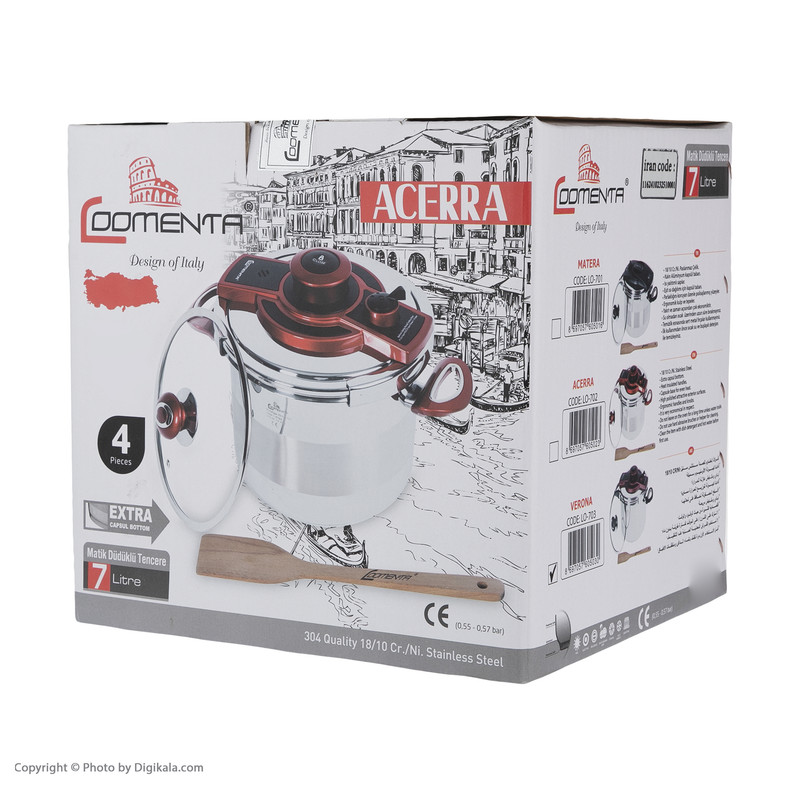 زودپز دارای درب کلیپسو و سوپاپ 3 حالته اطمینان می باشد و جنس دیگ زودپز از استیل 304 است. دارای کپسول 4 لایه جهت سرعت در پخت و پز و کاهش مصرف انرژی است. همچنین یک درب شیشه ای جهت استفاده بصورت قابلمه و یک کفگیر چوبی نیز به همراه آن می باشد.