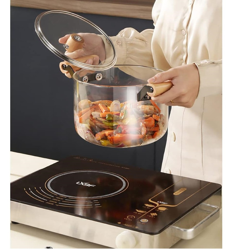 قابلمه شفاف: به راحتی و بدون نیاز به برداشتن درب، روند پخت را مشاهده کنید. کافیست نگاهی به قابلمه بیندازید تا دقیقاً ببینید غذایتان در چه مرحلهای است. حتی میتوانید این کار را هنگام خرد کردن سبزیجات برای سالاد یا چیدن میز شام انجام دهید.