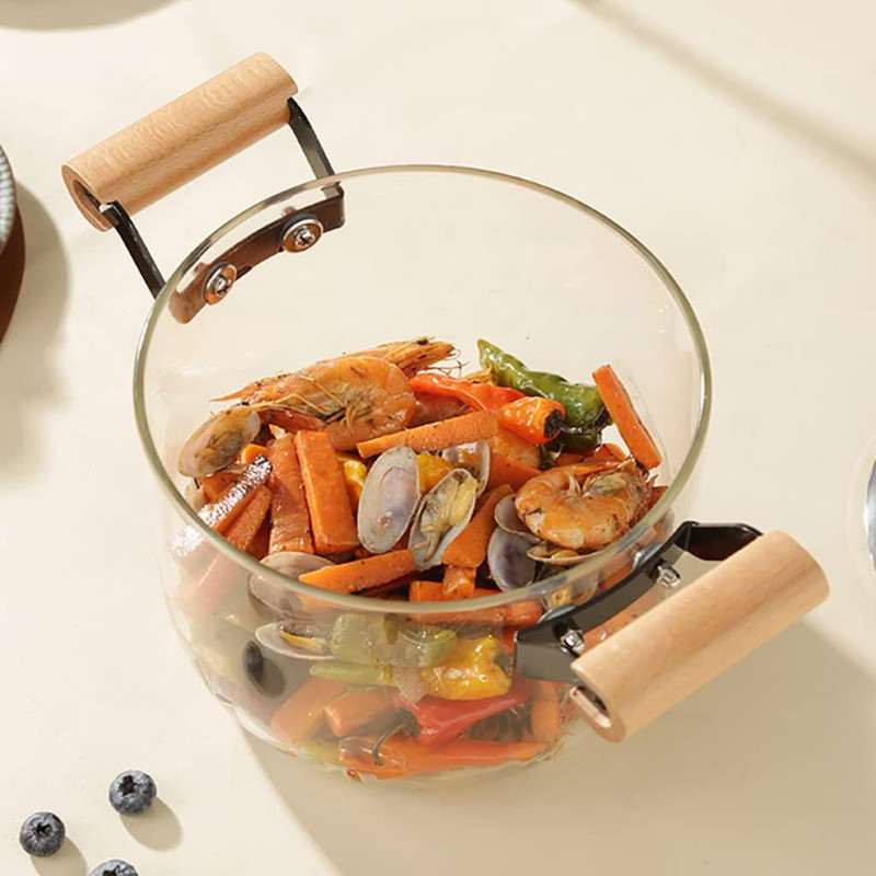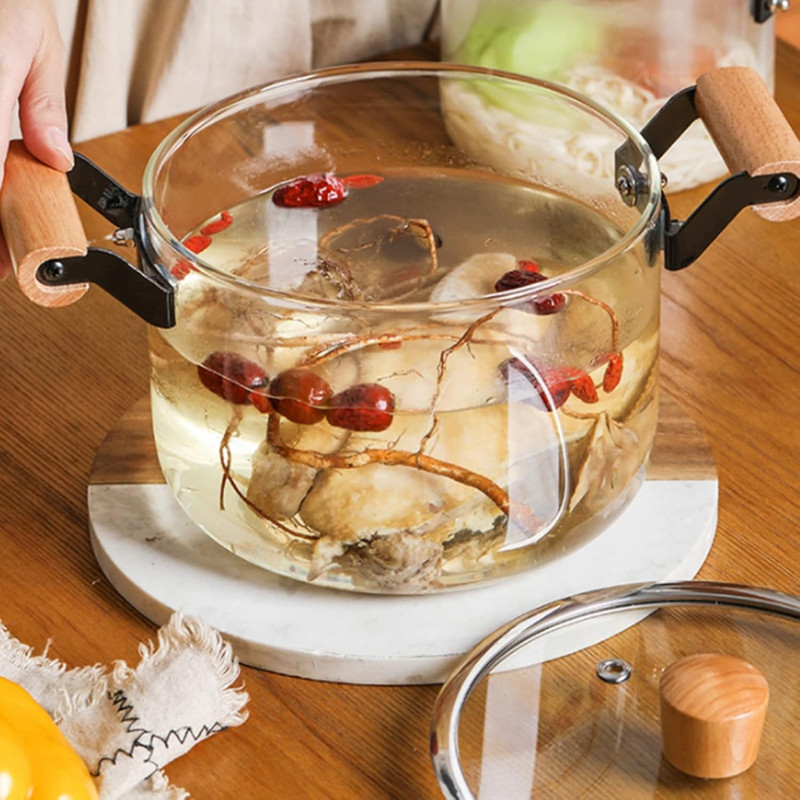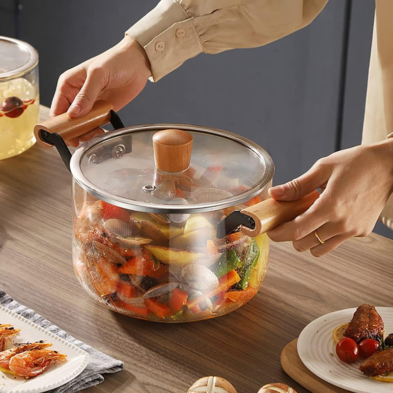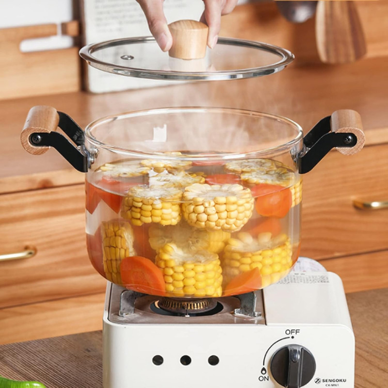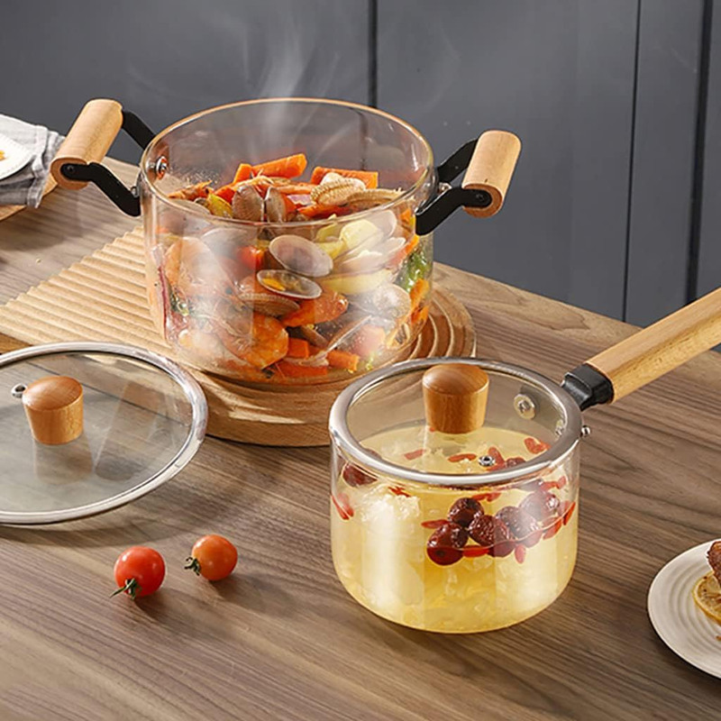 مقاوم در برابر حرارت: مقاومت عالی در برابر سرما و گرما، قابلمه شیشهای با درب، دما را تحمل میکند، میتواند با شعله باز گرم شود، میتواند روی اجاق گاز، فریزر، مایکروویو و فر استفاده شود