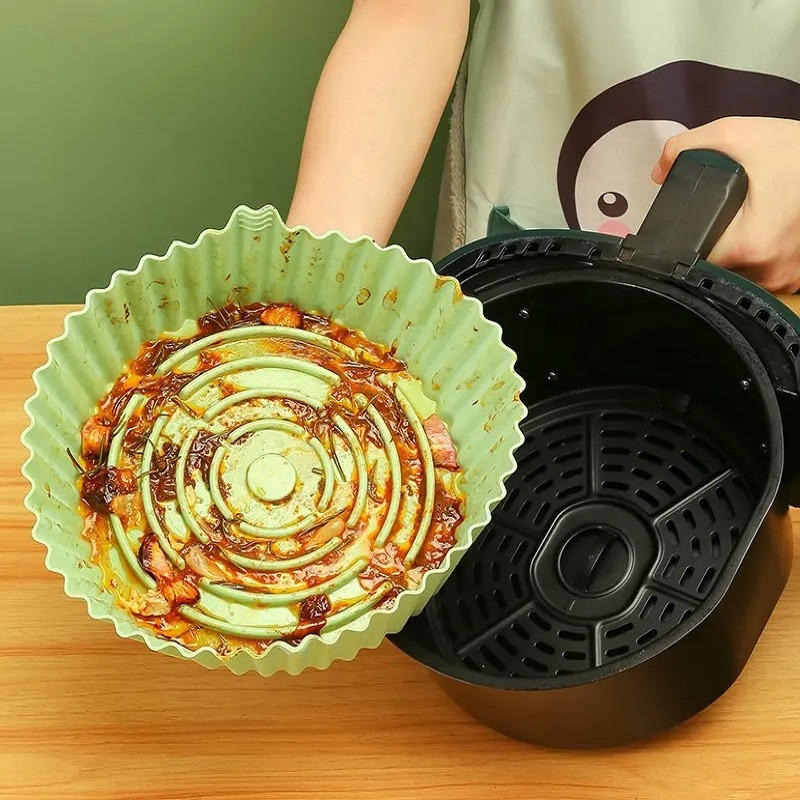 ظرف سیلیکونی هواپز و سرخ کن مخصوص دستگاههای سرخ کن و فر و ماکروویو ، بدون نیاز به روغن فراوان می تواند محصولات غذایی شما را با بهترین کیفیت سرخ نماید کاملا بهداشتی و فود گرید. همچنین با استفاده از این ظروف مواد غذایی به هیچ وجه به بدنه دستگاه شما نمیچسبد ، به راحتی قابل شستشو و استفاده می باشد . پیشنهاد ما به شما ظرف سرخ کن بدون روغن ایر فرایر است.شما میتوانید از فروشگاه اینترنتی بهگز این قالب را تهیه نمایید.