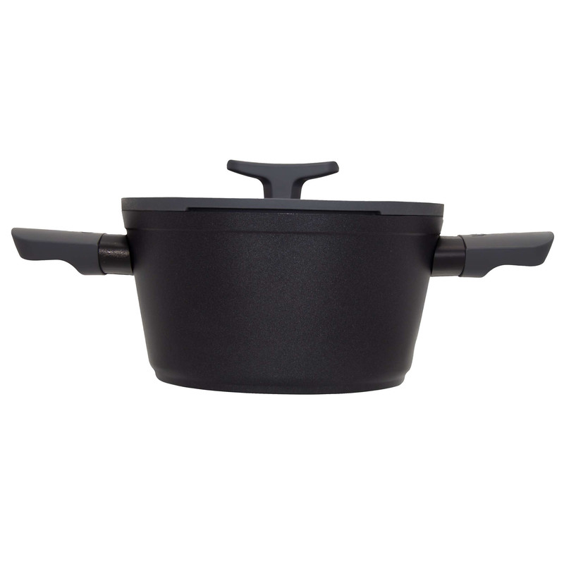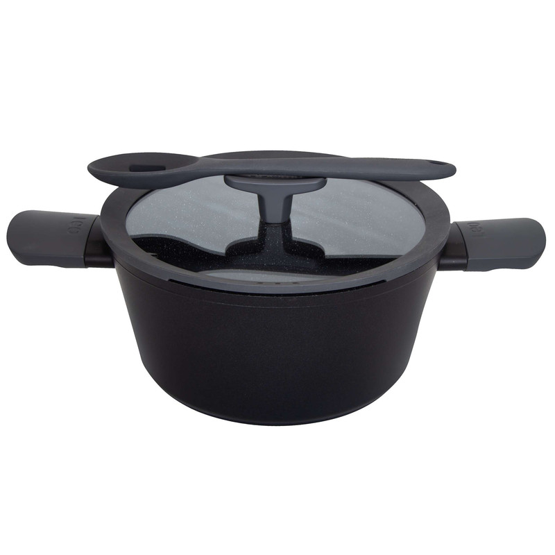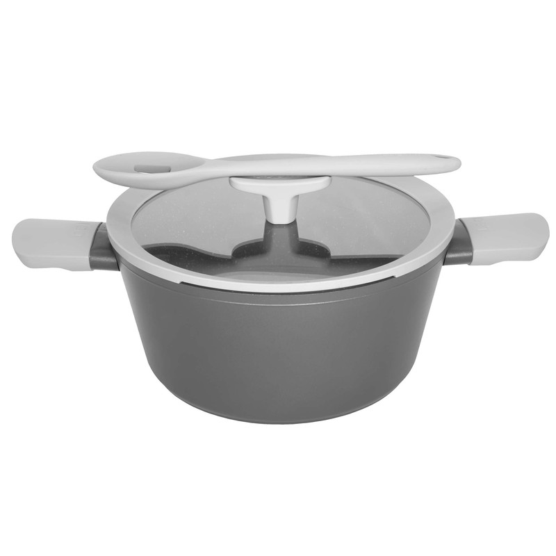 دستههای باکالیت سافتتاچ در برابر حرارت مقاوم بوده و مانع انتقال گرما میشوند. قپهی خاص روی درب، جایگاهی برای قرار دادن کفگیر و ملاقه دارد و از جنس باکالیت نسوز ساخته شده است. کف قابلمه نیز با طراحی ضدلغزش و درج اطلاعاتی مانند قطر و حجم، کارایی بیشتری ایجاد میکند.