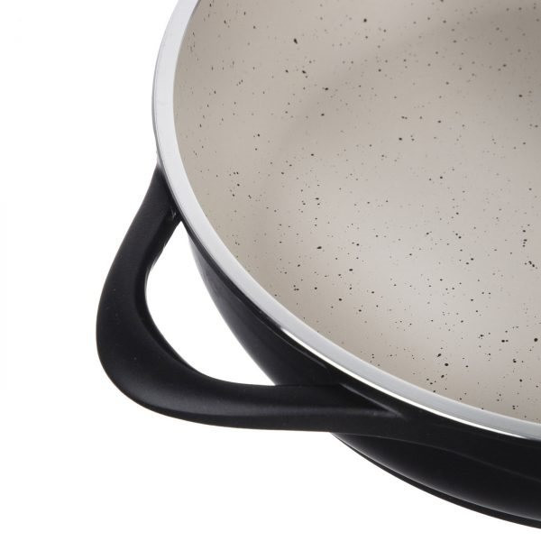 تابه عروس با ضخیم ترین و مرغوبترین نوع ورق دایکاست ضخامت بدنه 2.5 میلیمتر و ضخامت کف 5 میلیمتر و داخل گرانیت و استفاده شده از مرغوب ترین مواد اولیه وزن:2100 گرم دارای 30 سال سابقه تولید