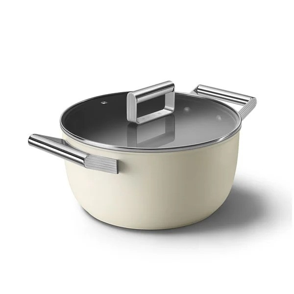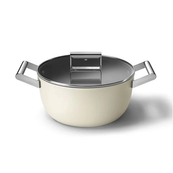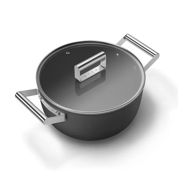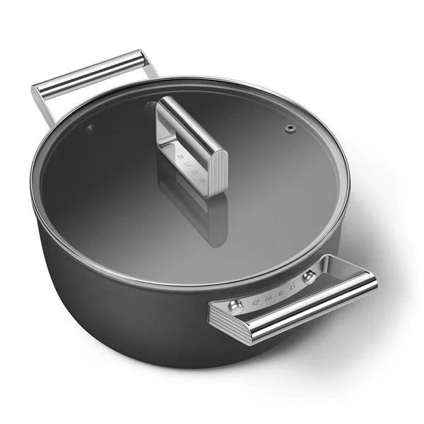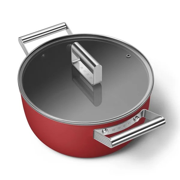 قابلمه اسمگ رنگ قرمز دارای پوشش نچسب است که مصرف چربی را هنگام سرخ کردن کاهش داده و پخت سالمتری فراهم میکند. این پوشش در دماهای بالا مقاوم است و برای انواع اجاقها و آشپزی مناسب است. کف قابلمه توزیع یکنواخت گرما را تضمین میکند و با بدنه آلومینیومی هماهنگ است. دستههای فولاد ضد زنگ آن مقاوم، بادوام و سازگار با دمای بالا هستند، بهطوری که میتوان از قابلمه در فر نیز استفاده کرد. این ویژگیها به قابلمه اسمگ قابلیت استفاده در اجاقهای گازی، برقی و القایی، همچنین در فر تا دمای ۲۵۰ درجه سانتیگراد را میدهد.