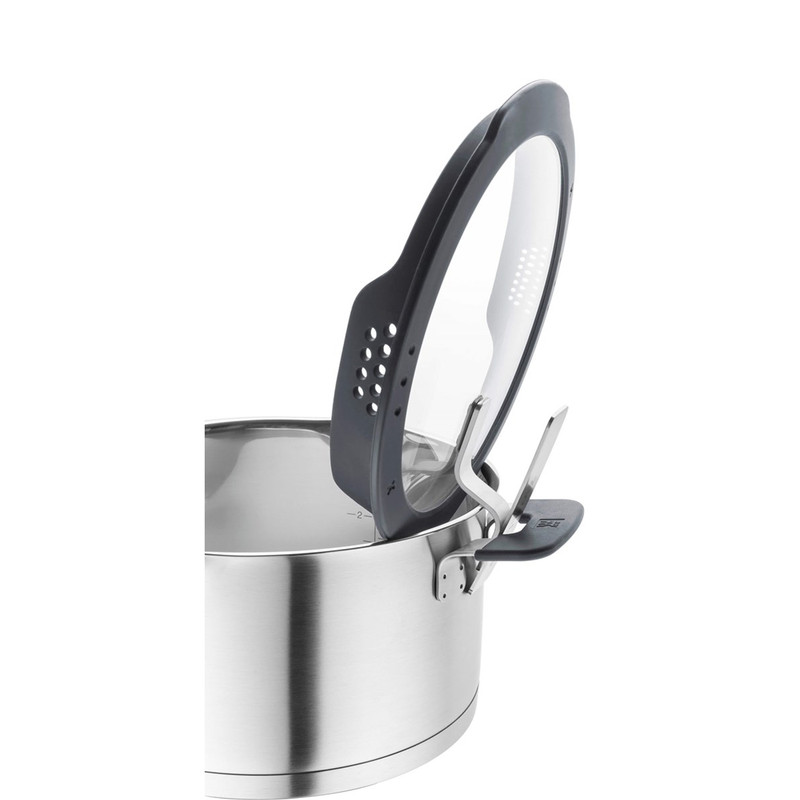 همچنین بر روی درب آن دارای سوراخ هایی می باشد که جهت خالی کردن مایعات بدون نیاز به صافی و در قسمت بالایی آن هم دارای دریچه ایی است که کمک میکند به آرامی بخار قابلمه خارج شود و پخت بهتری داشته باشد .