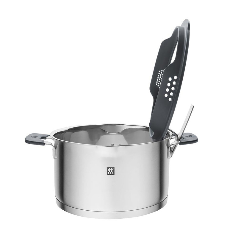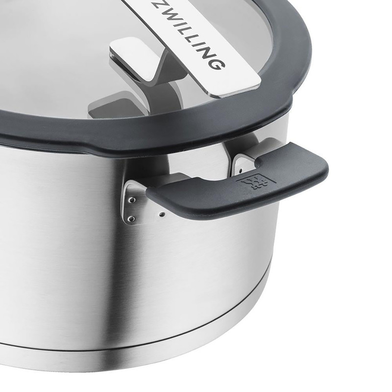 سرویس قابلمه 9 پارچه زولینگ مدل ZWILLING Simplify از 9 قطعه ساخته شده از استیل 18/10 و درب آن از استیل ، شیشه و سیلیکون ساخته شده است همچنین دسته های قابلمه به دلیل دارا بودن سیلیکون در طول پخت و پز داغ نمی شوند . کف سه لایه جهانی ثبت شده + Sigma Classic به لطف توزیع و حفظ بهینه گرما ، هنگام پخت و پز در مصرف انرژی صرفه جویی می کند . سطح فوق العاده صاف و فوق العاده سخت در برابر خراش و خط ، بنابراین به راحتی تمیز می شود و همیشه ظاهر آن جدید است . این سرویس دارای شیر جوش سایز 16 با حجم 1/5 لیتر ، یک قابلمه با سایز 24 سانت و حجم 6 لیتر ، قابلمه 20 سانت بلند با حجم 3.5 لیتر ، قابلمه 20 سانت کوتاه با حجم 3 لیتر و قابلمه 16 سانت با حجم 2 لیتر می باشد .