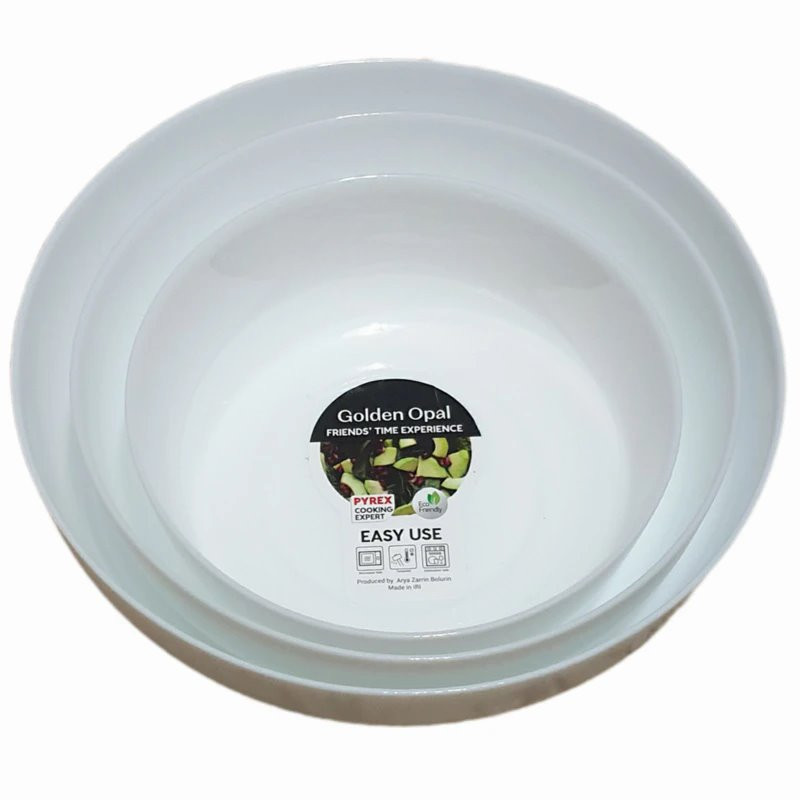 سرویس ۳ پارچه تابه های ارکوپال پیرکس شرکت گلدن اوپال که در کنار زیبایی و بهداشت فراوانش تحمل حرارتی بالایی داشته و قابل استفاده در فر و ماکروویو را دارد.