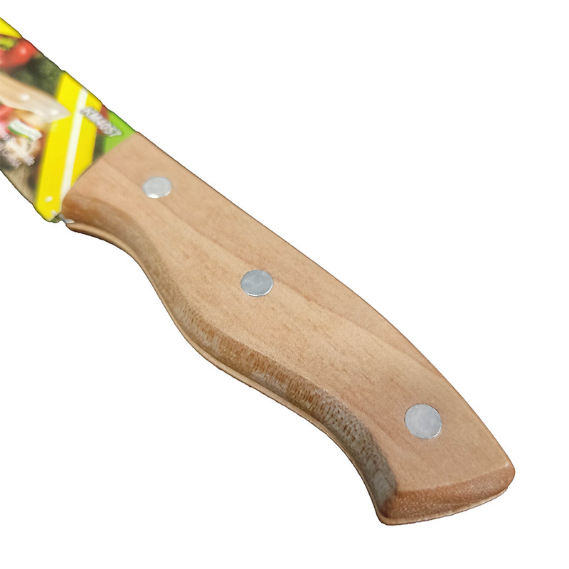 تیغهی تیز و مقاوم آن برای برش انواع مواد غذایی مانند سبزیجات، گوشت و میوهها عملکرد دقیق و روانی دارد. دستهی چوبی با طراحی سه پرچ فلزی، علاوه بر ظاهر زیبا، استحکام و دوام بالایی را نیز تضمین میکند. چاقوی KM4057 ترکیبی از کیفیت، طراحی زیبا و عملکرد کاربردی را در اختیار شما قرار میدهد.