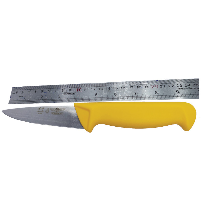 این چاقو از نوع بیخصی کوچک است و جنس تیغه ، اصل فولاد المان است . همچنین به مدل بیخصی کوچک حیدری شناخته می شود . دسته از جنس پلاستیک فشرده است . تیغه چاقو از جنس فولاد اصل آلمان و با ضخامت استاندارد می باشد. وزن این چاقو 70 گرم است . از این چاقو میتوانید در آشپزخانه منزل خود و یا توسط یک قصاب حرفه ای در قصابی گوشت و مرغ و ماهی جهت فیله کردن استفاده شود . پس از استفاده از چاقو شسته و سپس کاملا خشک شود . تیغه فولاد آلمان اصل برای این چاقو استفاده شده است که بسیار برندگی بالا داشته و ضد زنگ است . دسته این چاقو بسیار خوش فرم است و ساعت ها استفاده از این چاقو شما را خسته نمی کند . سال ها از این چاقو استفاده کنید و از برش ها لذت ببرید . بدلیل تیغه بسیار برنده این چاقو شما از حداقل انرژی برای برش های خود استفاده می کنید . طول تیغه 11 سانتی متر ، طول دسته پلاستیکی 14 سانتی متر ، حداکثر عرض تیغه 3 سانتی متر است . این چاقو اصل حیدری زنجان و با کیفیت عالی در سطح کشور در حال توزیع است . پس از اتمام کار کاملا شسته و خشک شود . بسیار خوش دست و تیغه برنده ای دارد . جهت کار های حرفه ای نیم سنگین و سنگین بسیار کاربردی است .
