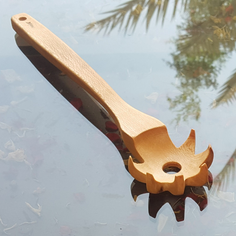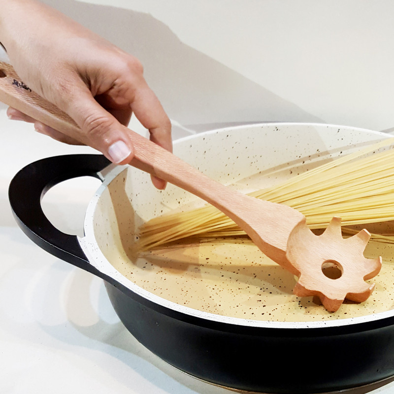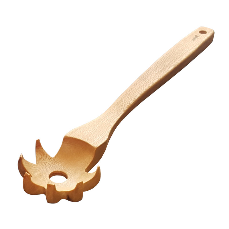 قاشق چوبی ماکارونی چوبلمه ، محصولی جدید با طراحی منحصر به فرد و البته بسیار زیبا می باشد . این قاشق تولید شده از جنس چوب مرغوب می باشد که در عین کیفیت دارای مقاومت مناسبی است . کفی قاشقی همانند نمونه های معمول به صورت چنگکی طراحی شده که به راحتی می تواند رشته و ماکارونی را در بر بگیرد . سوراخ قرار گرفته در میانه قاشق ، همان پیمانه ماکارونی است که در صورت نیاز می توانید از آن استفاده کنید . سطح یکدست و کاملاً سیقلی را نیز به دیگر خصوصیات این کفگیر چوبی اضافه کنید . تفاوتی ندارد از چه ظرفی استفاده می کنید چون در حال استفاده از یک ابزار آشپزخانه چوبی هستید .