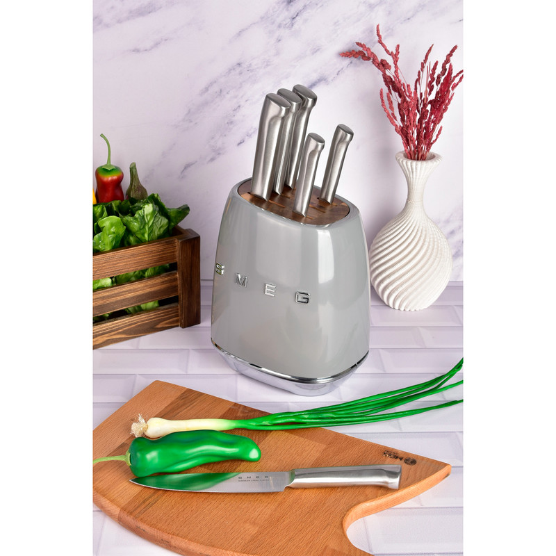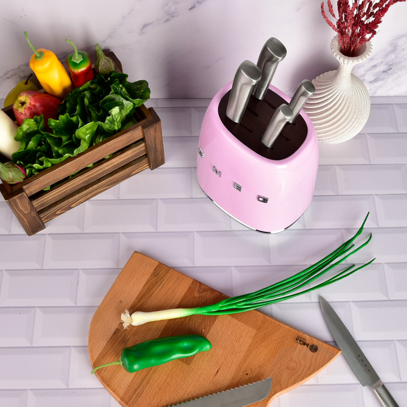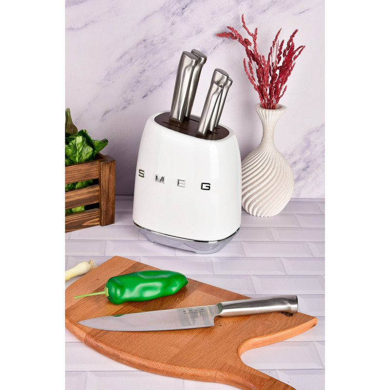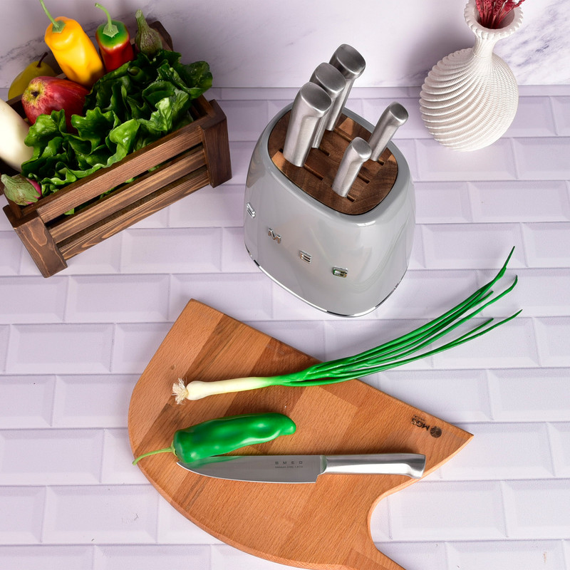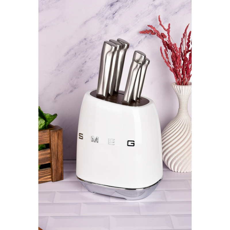 سرویس کارد 7 پارچه اسمگ کد 9181 دارای تنوع رنگ و مدل می باشد که هر کدام از کاردها کارایی خود را دارد. پایههای ضد لغزش بلوک مانع از لغزش بلوک در هنگام برداشتن چاقو میشوند. چاقوهای این مجموعه دارای تیغه های با کیفیت استیل ضد زنگ آلمانی و دسته های فولادی ضد زنگ صیقلی و بسیار بادوام هستند و برای کارهای روزمره برش انواع مواد غذایی آماده هستند. این مجموعه شامل چاقوی سبزیجات، چاقوی همه کاره، چاقوی گوشت، چاقوی سانتوکو، چاقوی نان و چاقوی سرآشپز و یک بلوک (استند ) می باشد