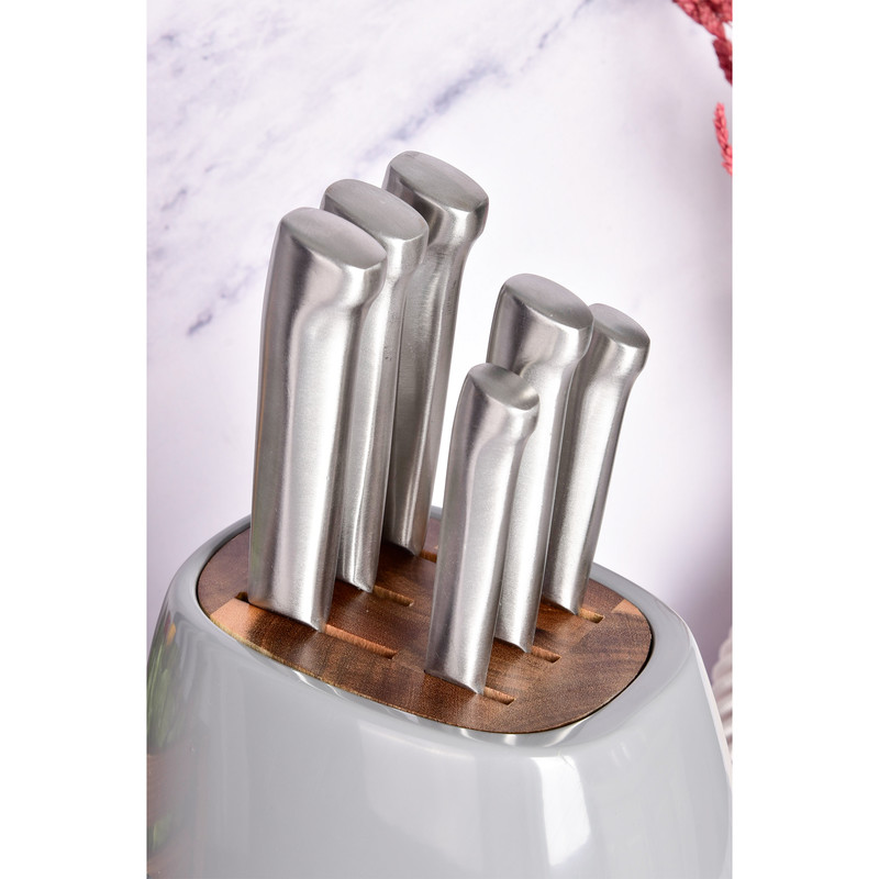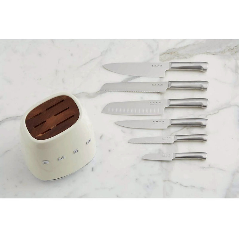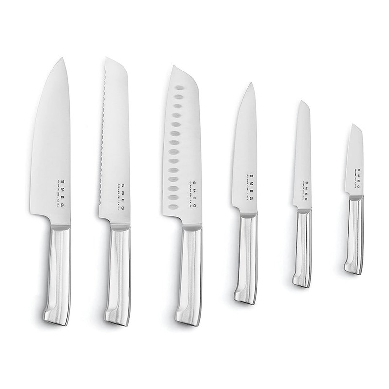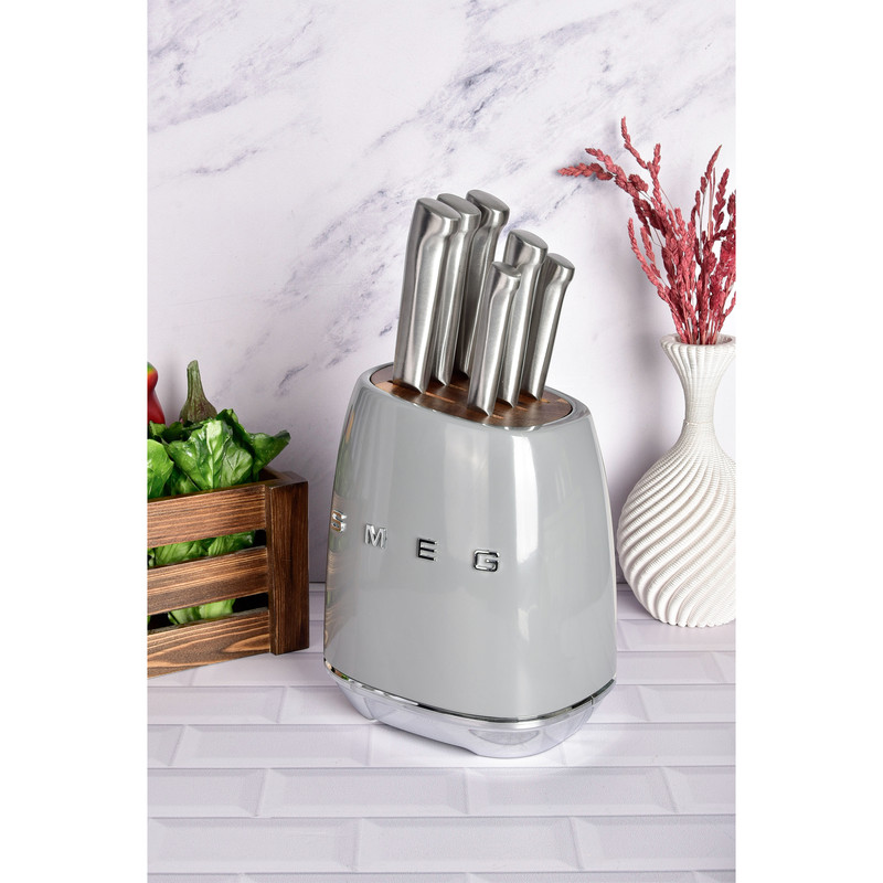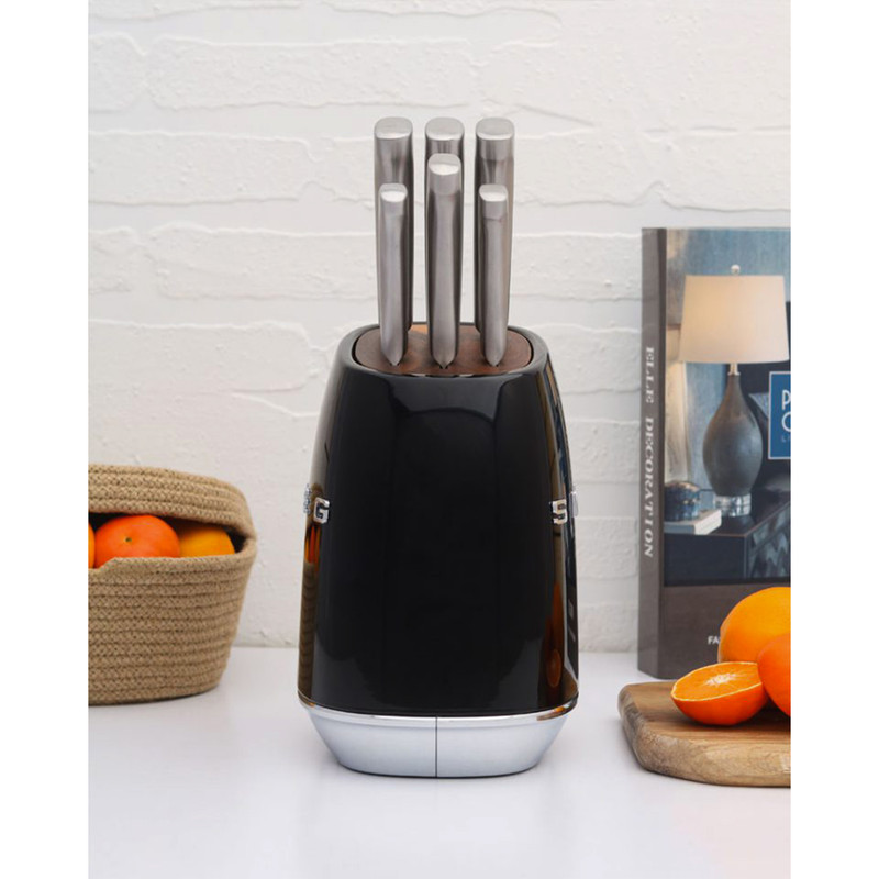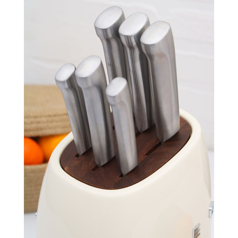 سرویس کارد 7 پارچه اسمگ کد 9181 دارای تنوع رنگ و مدل می باشد که هر کدام از کاردها کارایی خود را دارد. پایههای ضد لغزش بلوک مانع از لغزش بلوک در هنگام برداشتن چاقو میشوند. چاقوهای این مجموعه دارای تیغه های با کیفیت استیل ضد زنگ آلمانی و دسته های فولادی ضد زنگ صیقلی و بسیار بادوام هستند و برای کارهای روزمره برش انواع مواد غذایی آماده هستند. این مجموعه شامل چاقوی سبزیجات، چاقوی همه کاره، چاقوی گوشت، چاقوی سانتوکو، چاقوی نان و چاقوی سرآشپز و یک بلوک (استند ) می باشد
