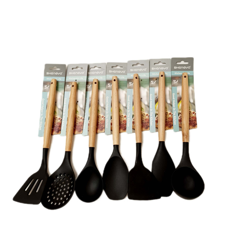 ملاقه کفگیر و لیسک سیلیکونی شنگیا جدید متفاوت با نوع قبلی با بسته بندی جدید و نیز سیلیکون خارجی با چوب بامبو با مقاومت دمای بالا فاقد مواد مضرر جهت سلامتی مصرف کننده و انعطاف پذیری بسیار بالا، عدم تغییر شکل به مرور زمان و شفافیت بسیار در مقابل پارگی، ضربه و خوردگی می باشد