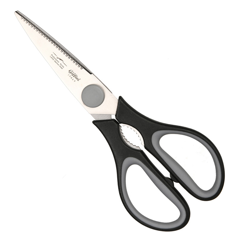 این چاقو جزو تیزترین چاقوها شناخته میشود که توسط GIFFINI ایتالیا ارایه شده و بسیار کابردی میباشد و بعنوان یک چاقوی همه کاره در آشپزخانه به شما کمک خواهد کرد که از کارکردن با این چاقو و آشپزی لذت ببرید.و قیچی آشپزخانه همراه ان کمک فراوانی در آشپزی راحت به شما خواهد کرد.